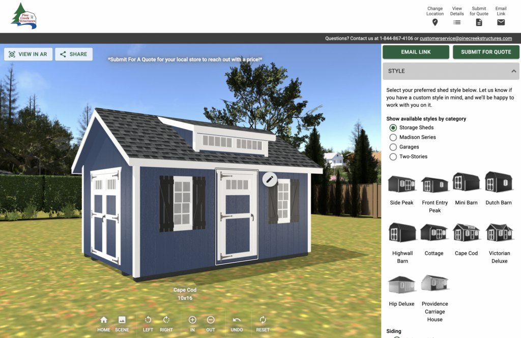 Design your dream garage with our 3D Builder! This tool allows you to fully customize your structure by selecting the perfect style, colors, size, features, and more. Our skilled Amish craftsmen will custom-build your structure to your specific needs. Once you’ve designed your ideal single-car garage, submit it for a quote, and our Monroeville team will contact you to discuss your design.