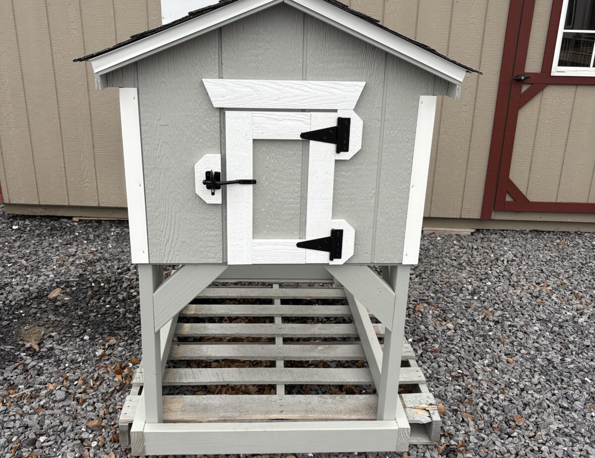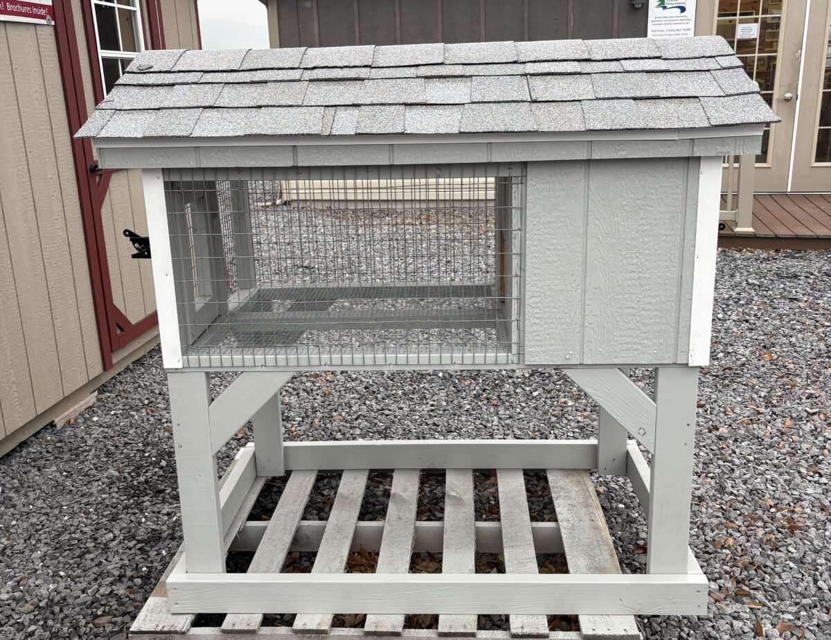 This 30″x48″ Animal shelter features Light Grey Lp siding and a white trim Also comes with old English pewter shingles Perfect Home for a furry little friend.