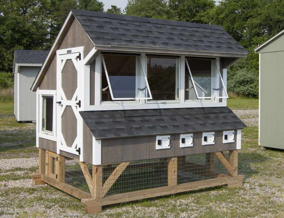 Raising chickens is a wonderful hobby, and having fresh eggs each day is even better. Designed for up to 25 chickens, they’ll LOVE living in this chicken condo. It includes five windows, an access door, a turn-out door, four nesting boxes, a ramp, and roosts.