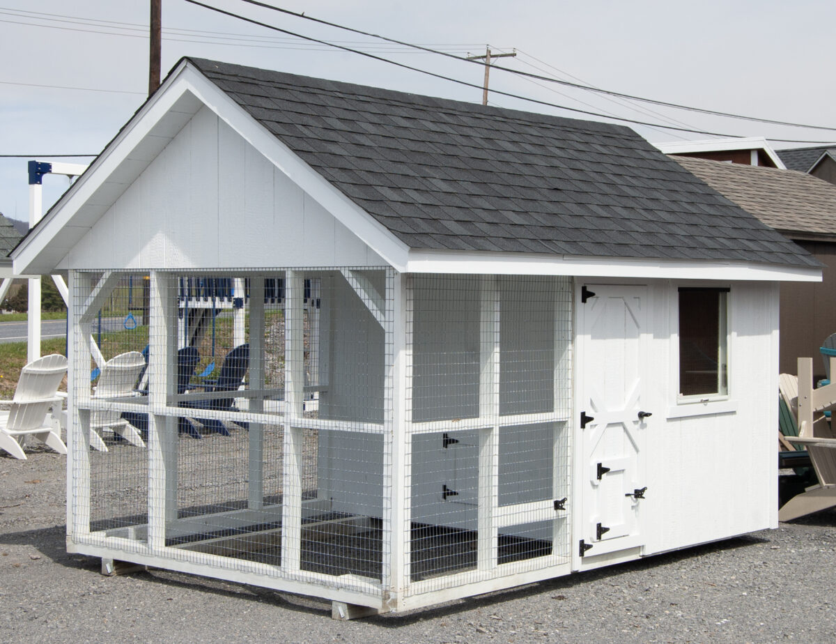 Our King Coops were designed with YOU in mind. This new design includes an 5′ enclosed area and and 7′ exterior run, both tall enough for you to enter comfortably. It also includes a turn out door between the interior and the enclosed run and another in the full size door from the exterior run to outside the coop. The nesting boxes are easily accessible from both inside and outside the coop.