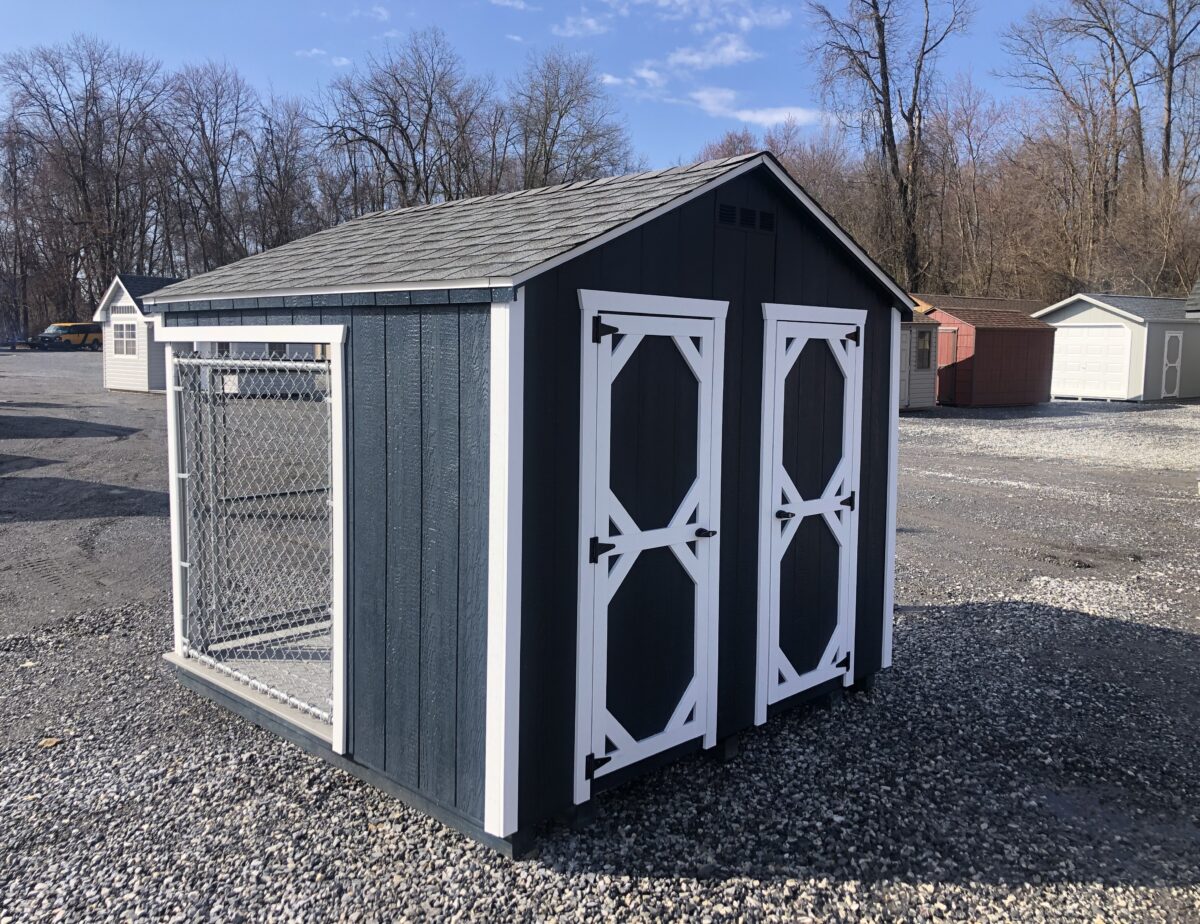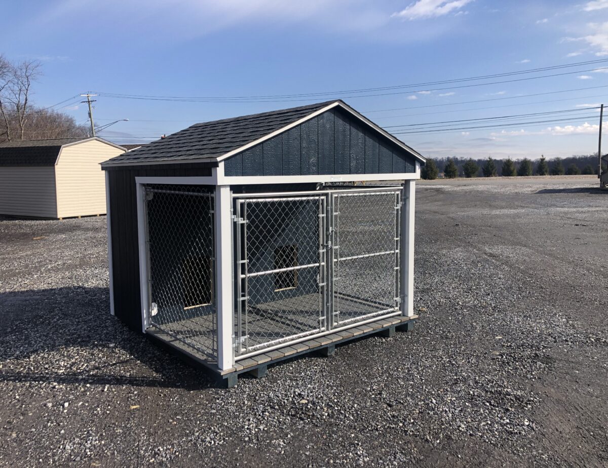 call 717-361-8986 cell number 717-629-9544 or email etown@pinecreekstructures.com After hours call 717-629-9544. this kennel comes with, 8×8 dog kennel with a 5×8 exterior run area, chain link panels with 2 / chain link gates, exterior run comes with composite decking for comfort, 2 / 5’x4′ compartments with 24″x62″ excess doors