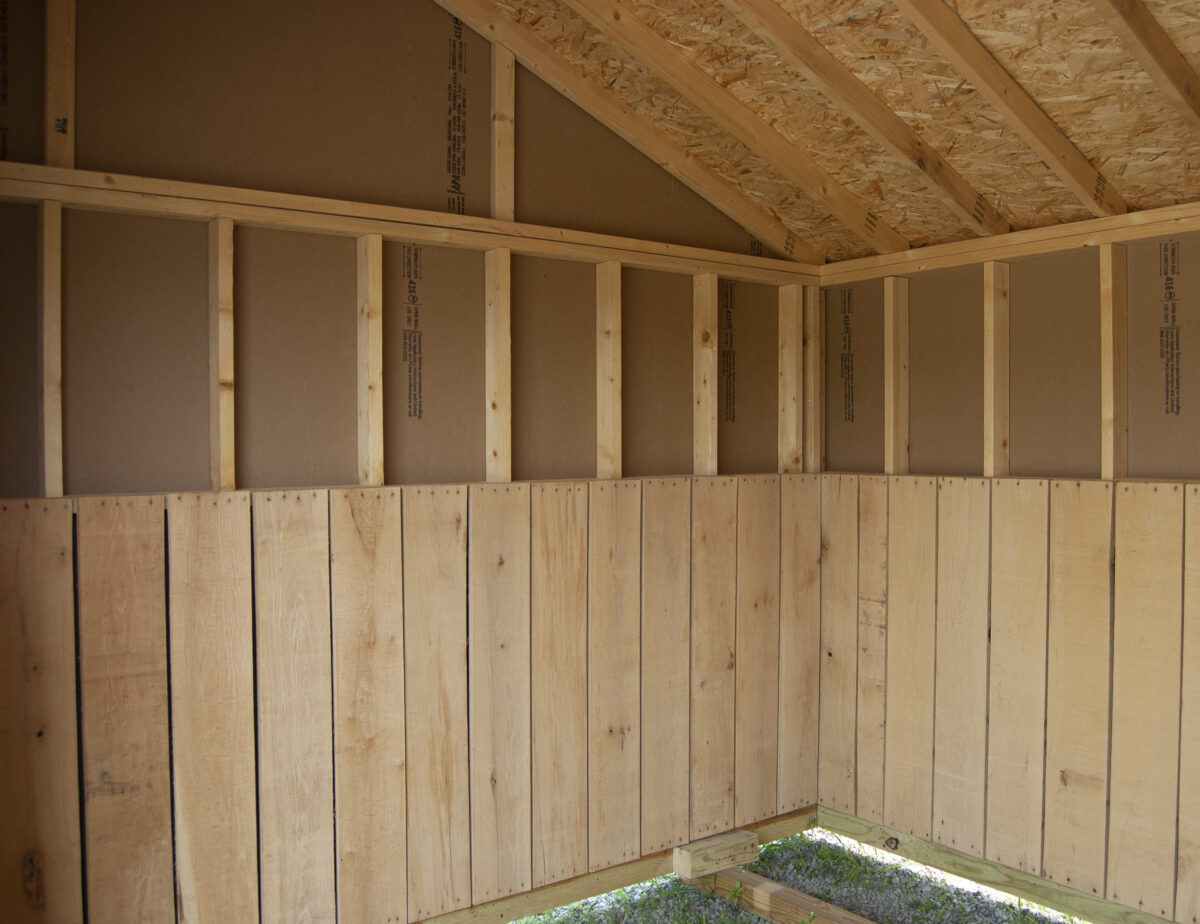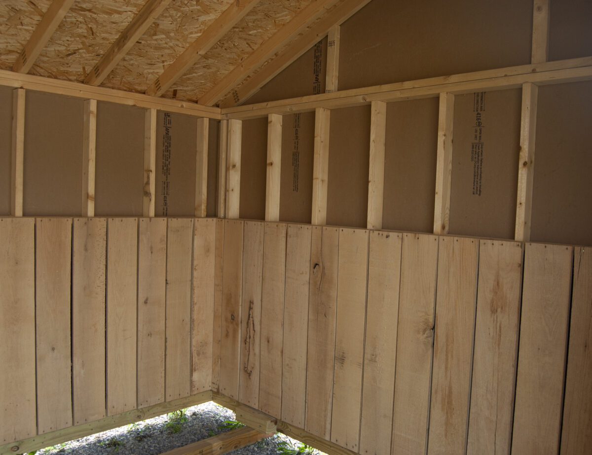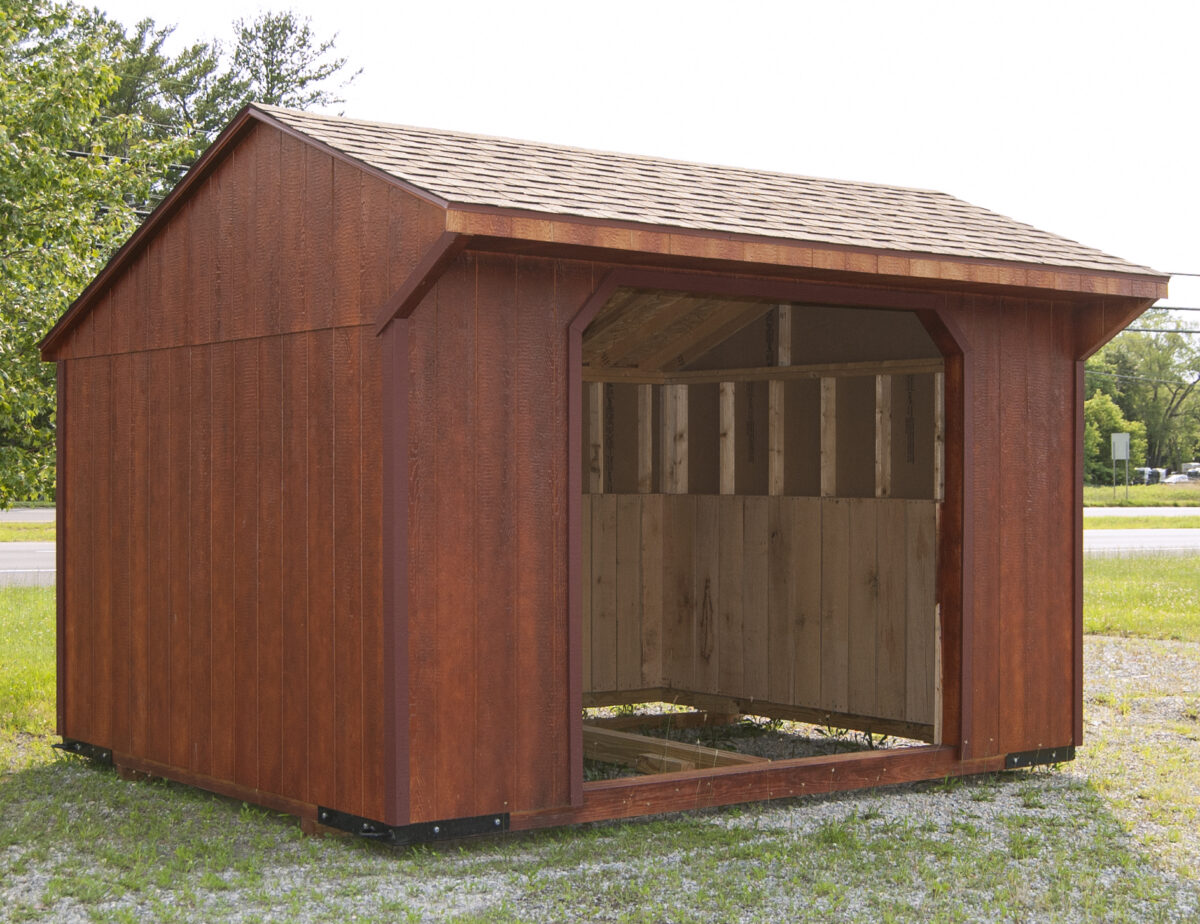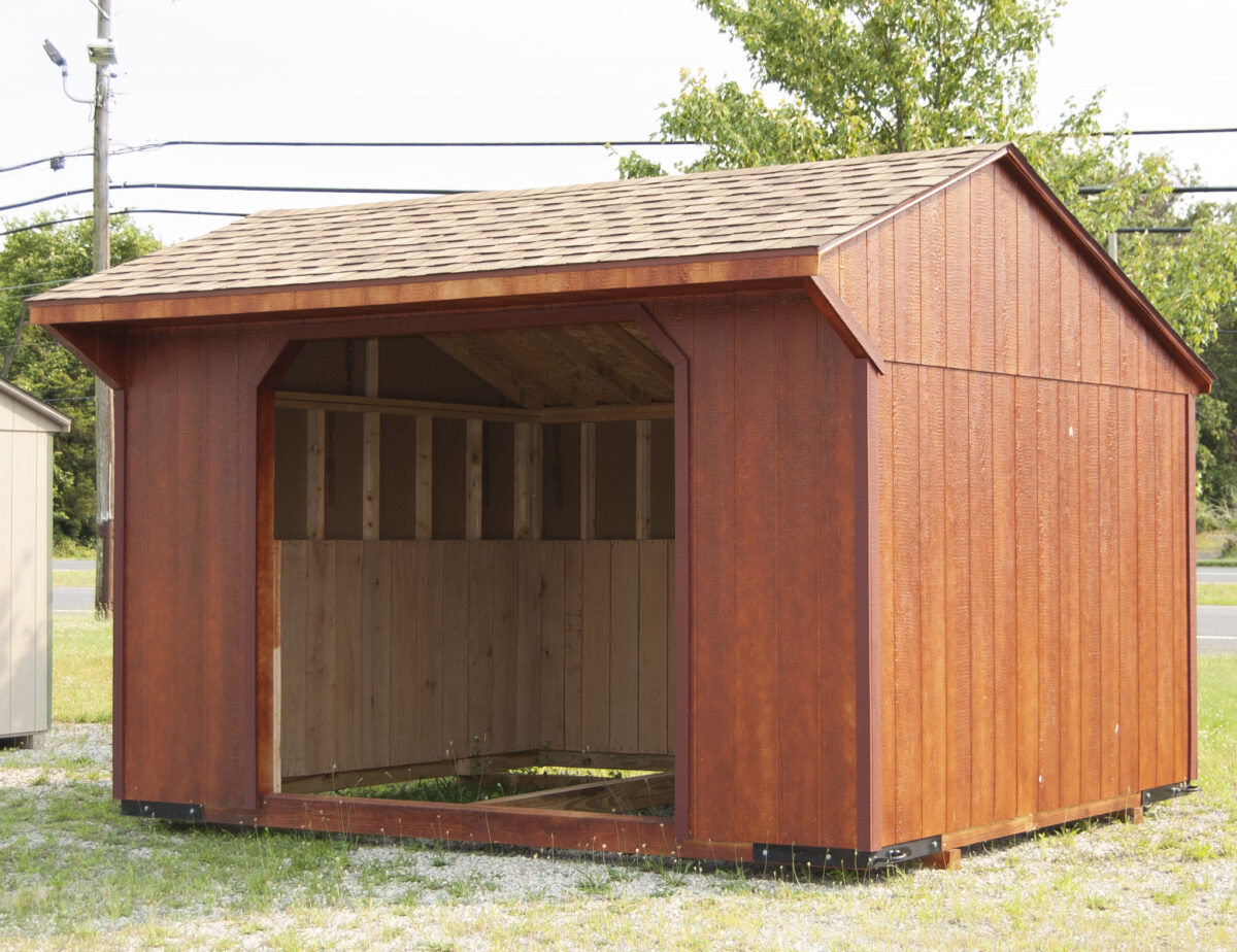 This run-in style barn offer protection from the sun, wind, and rain for your animals. 4′ high oak kick boards line the interior perimeter of the building. This animal shelter is available in Egg Harbor City, NJ. Come see it in person, call (609) 965-9333, or email eggharbor@pinecreekstructures.com for more info!