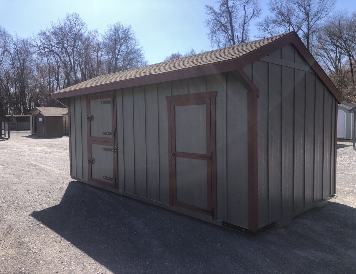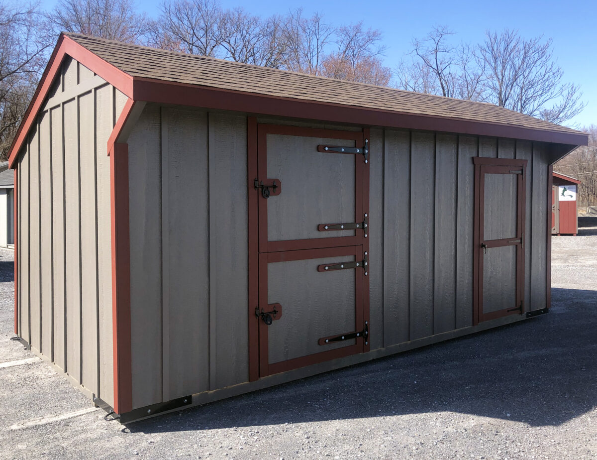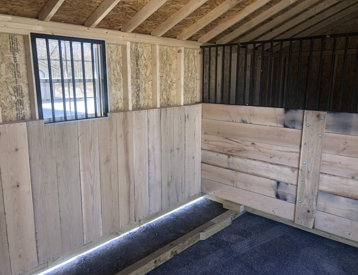 Call 717-361-8986 cell number 717-629-9544 or email at etown@pinecreekstructures.com After hours call 717-629-9544. This horse barn comes with a 10×12 stall with oak kick board and a dutch door and a 8×10 tac room with a 36″ door