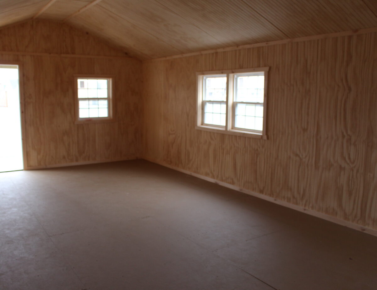 This 14×32 Peak White Deer Cabin is in stock and ready for delivery. With FREE LOCAL DELIVERY. If you want an amazing pre made hunting cabin, or a guest room. Maybe a game room. The sky is the limit with this structure. Already fully insulated floor to ceiling with a cathedral ceiling for more height and appearance. 2×6 roof rafters. A front porch. Just imagine what all you could use this for. Come on in a take a look for your self. Think about the different ways you can set it up with partitions for more rooms, and more. Call Milton at 301-331-9590 or E-mail me at mmiller@pinecreekstructures.com for more information.