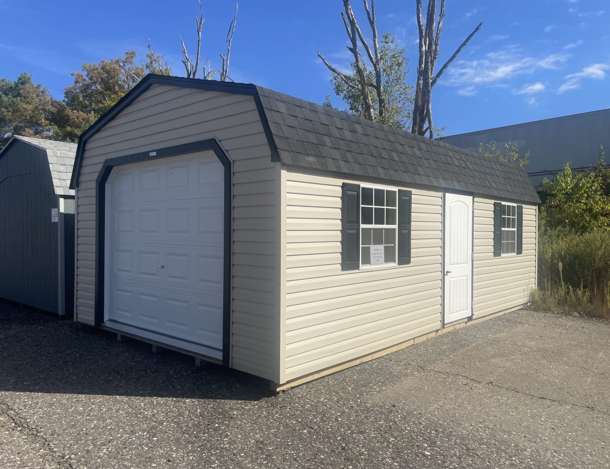 This Amish built  maintenance-free vinyl sided 14×24 Dutch Garage is in stock and ready for delivery.  This is the perfect garage if you want a place to keep your car out of the weather, and also have room for regular storage. It is big enough to have plenty of room with out having to worry about things falling into your car. Come check it out today. Have this building delivered in a week or order one to suit your needs and have it in 2-3 weeks at no extra cost.  Add a ramp for easier access.