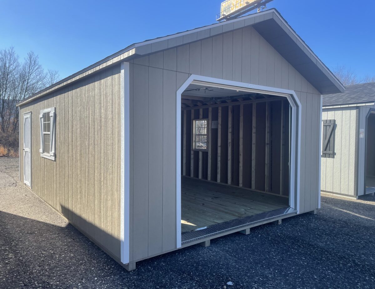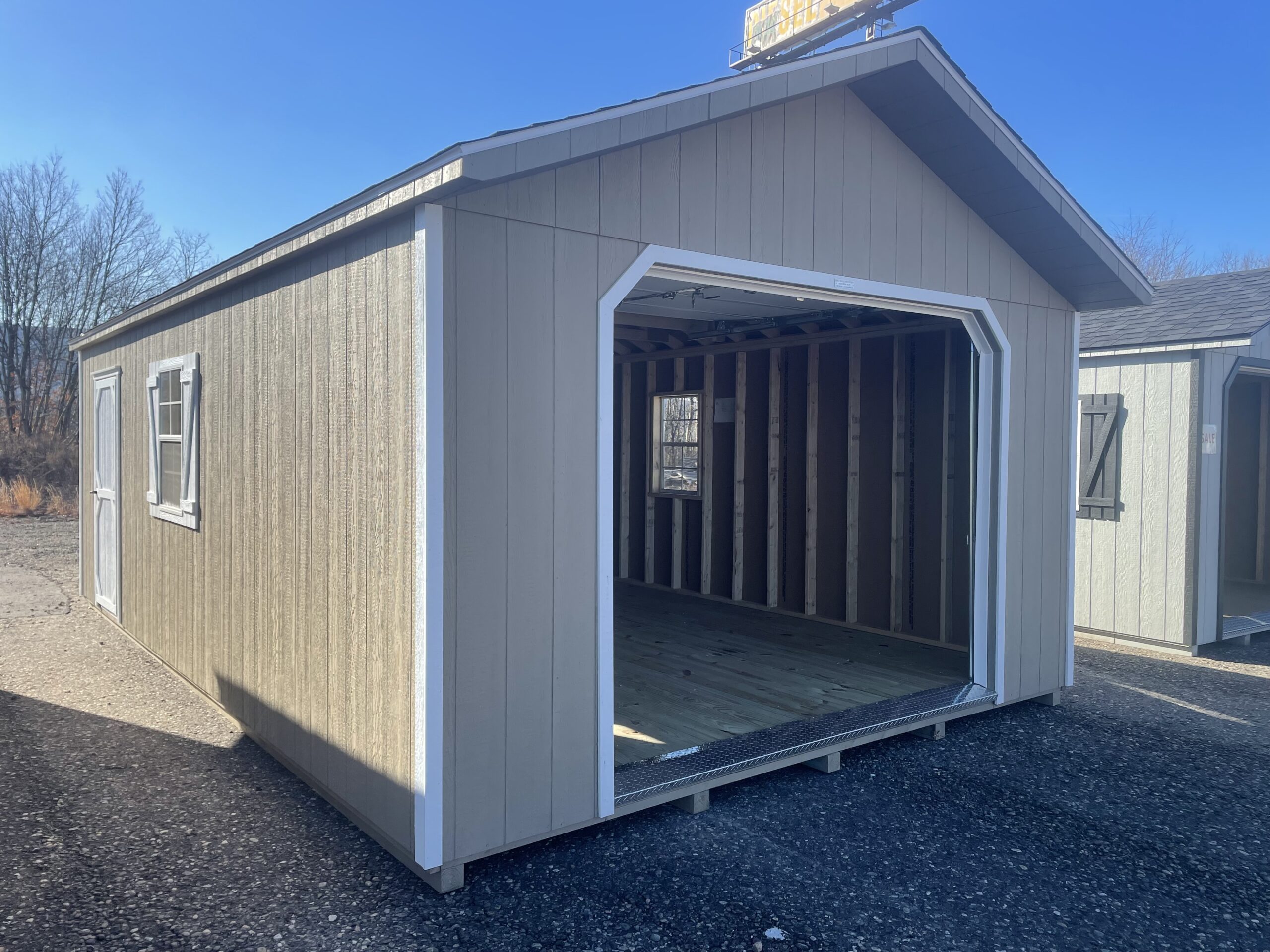 This Amish built 14×24 Peak Garage is in stock and ready for delivery. This is the perfect garage if you want a place to keep your car out of the weather, and also have room for regular storage. It is big enough to have plenty of room with out having to worry about things falling into your car. Come check it out today. Have this building delivered in a week or order one to suit your needs and have it in 2-3 weeks. We added a ramp for easier access.