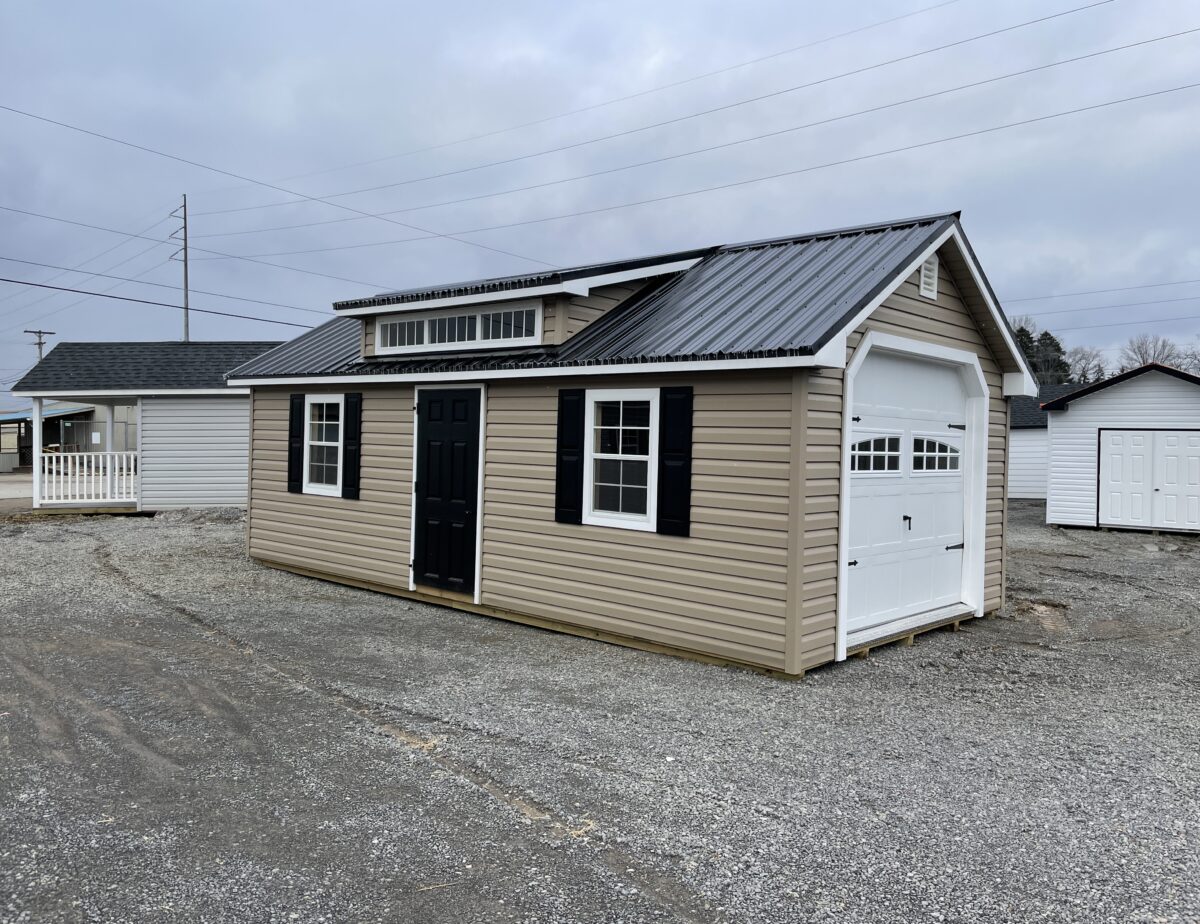This cape cod style storage shed has been upgraded into a garage!