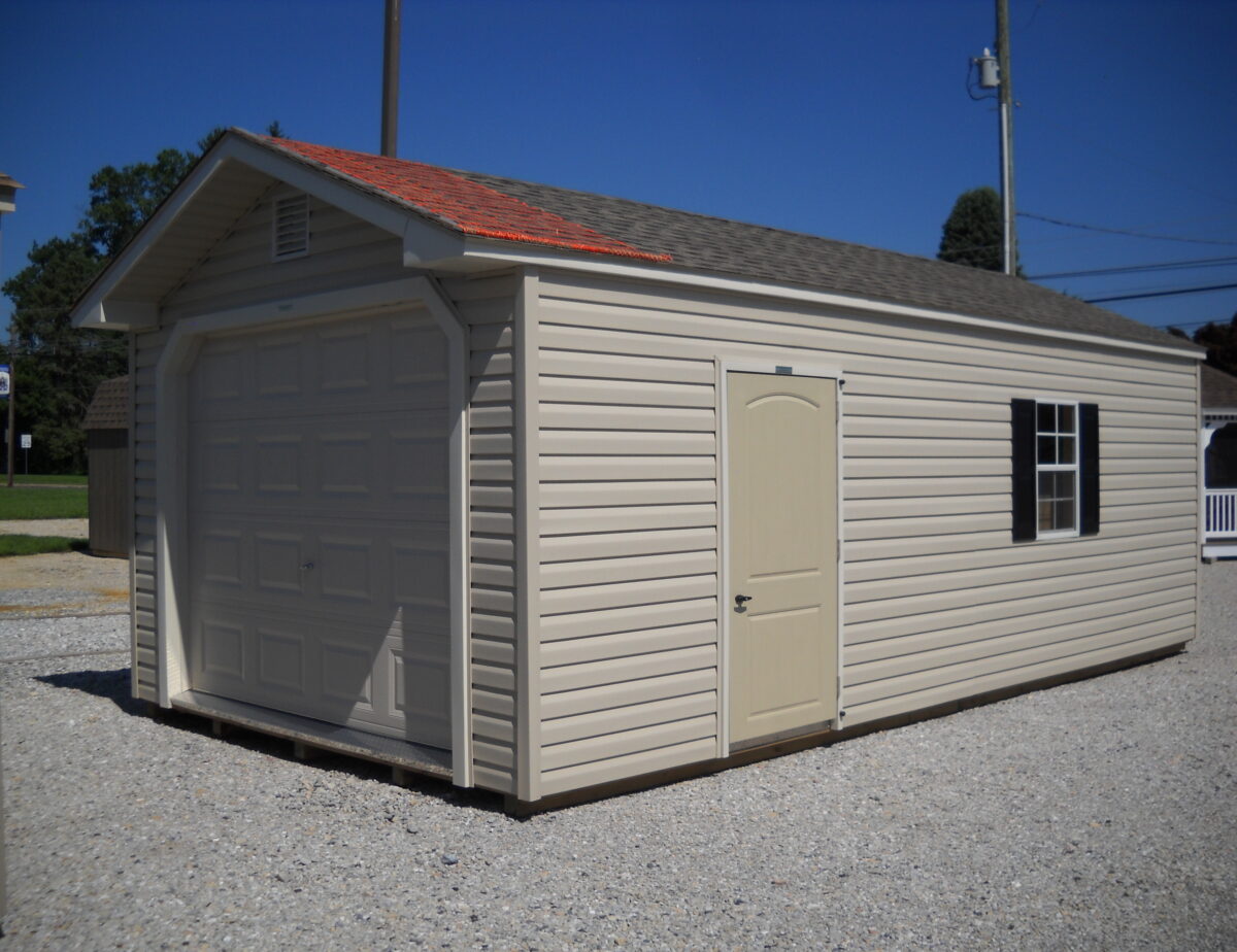 Protect your vehicle from the rain, hail, snow, dust, and dirt inside this beautiful Peak Garage! This garage features 16″ overhang above garage door, torsion springs on garage door, 3/4″ tongue and groove engineered floor on pressure treated 2x4s (12″ on center), double studded corners and top wall plates, and keyed fiberglass entry door. We also added an additional window, pale together for extra light. Add Loft which give’s 32 Sqft of Space ,for storage. Note Pic of shed Is a similar Model, Colors may be Slightly different