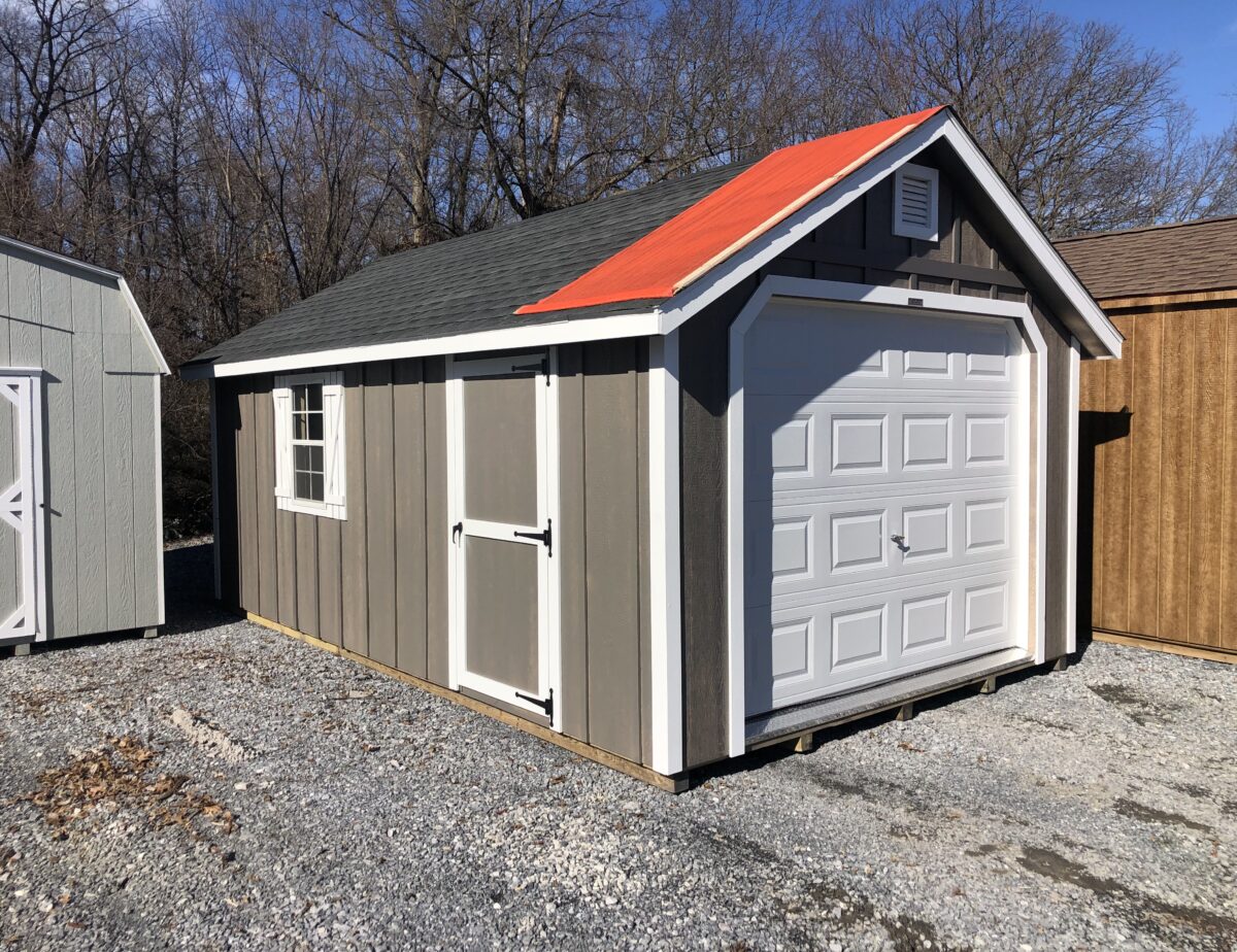 For more information call 717-361-8986 or etown@pinecreekstructures.com After hours call 717-629-9544. This building comes with 9′ 6′ 6″ insulated garage door with diamond plate, and a 36″ entry door, 1 window with screens, 12″ on center treated floor joist, 3/4 tongue & groove engineer flooring and 2 end vents for air flow.