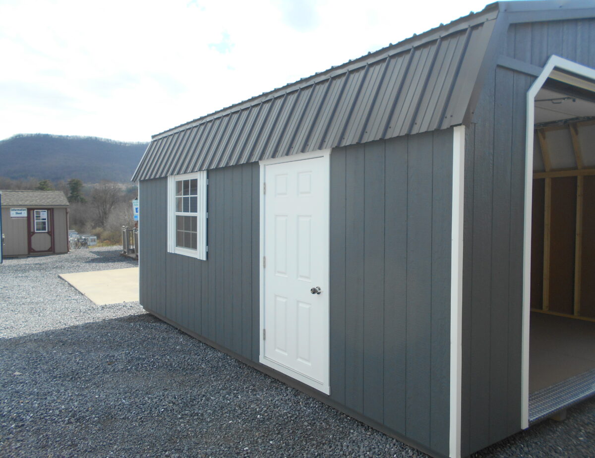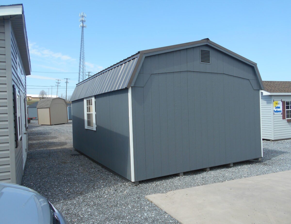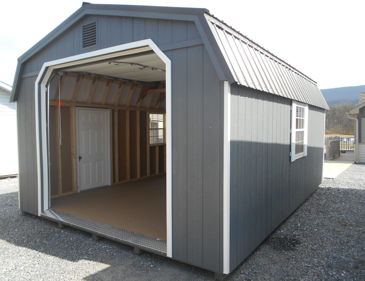 14×20 Dutch Garage comes with One 36″ White House solid, Two 30×36 Slider windows, And one 9×8 solid door, A 20′ Ridge vent Two 12×12 End Vents 9′ Ramp,9, Diamond Plate And More, Dark Grey With white trim and a metal bronze roof this garage is perfect to store all your wanted items from any kind of weather changes that may happen.