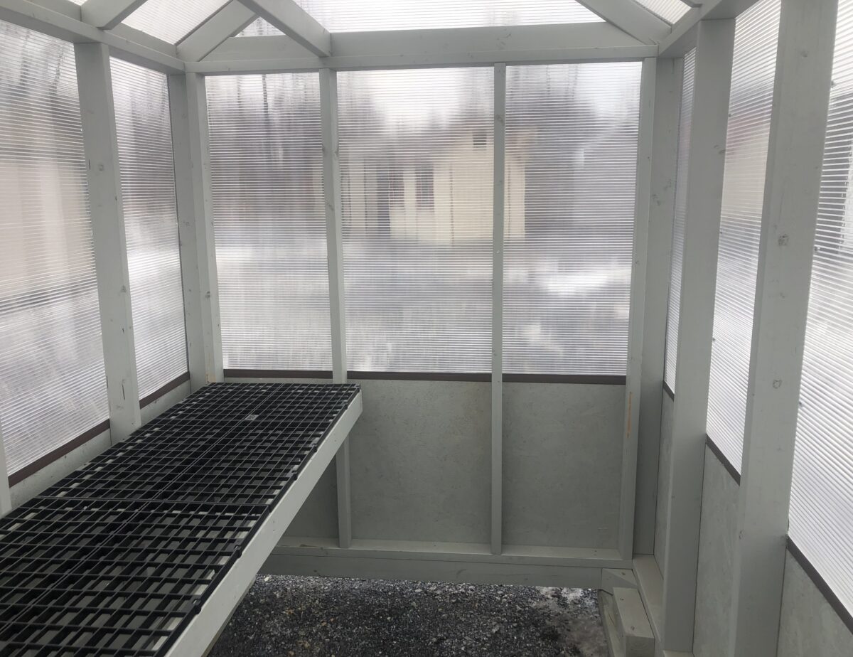 call for information 717-361-8986 or etown@pinecreekstructures.com After hours all 717-629-9544 This green house comes with 2×4 frame work , 8mm clear twinwall poly carconate on roof and on upper walls, lp smart wood siding on lower walls, 24’x8′ plastic shelf, 2×4 above shelf for hanging plants, single door with window and a High tunnel vent.
