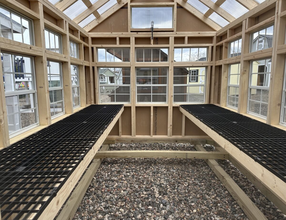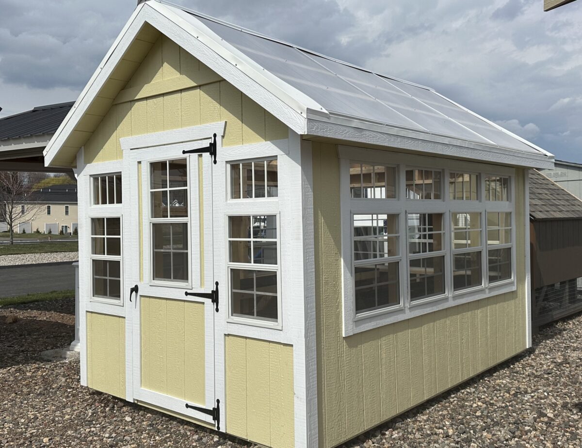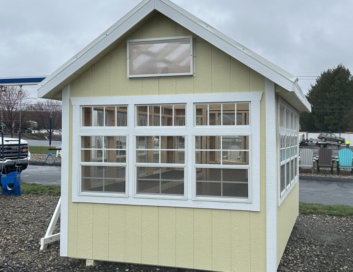 Crafted with 50-Year LP Smart Siding and a durable double-wall polycarbonate roof, this 8×12 Atrium greenhouse is built to withstand the Connecticut seasons while providing maximum UV light. Inside, you’ll find a bright, airy environment flooded with natural light thanks to 13 single-hung windows and elegant transom windows.