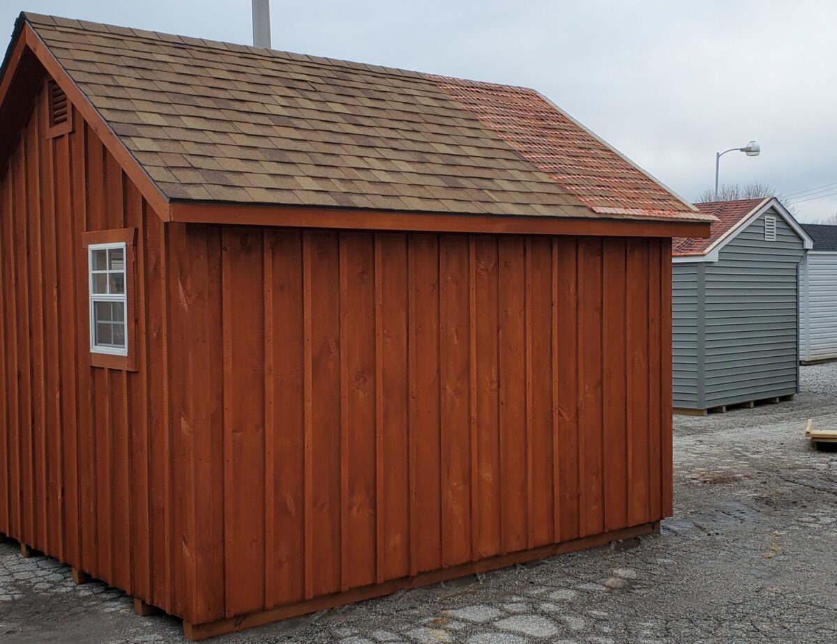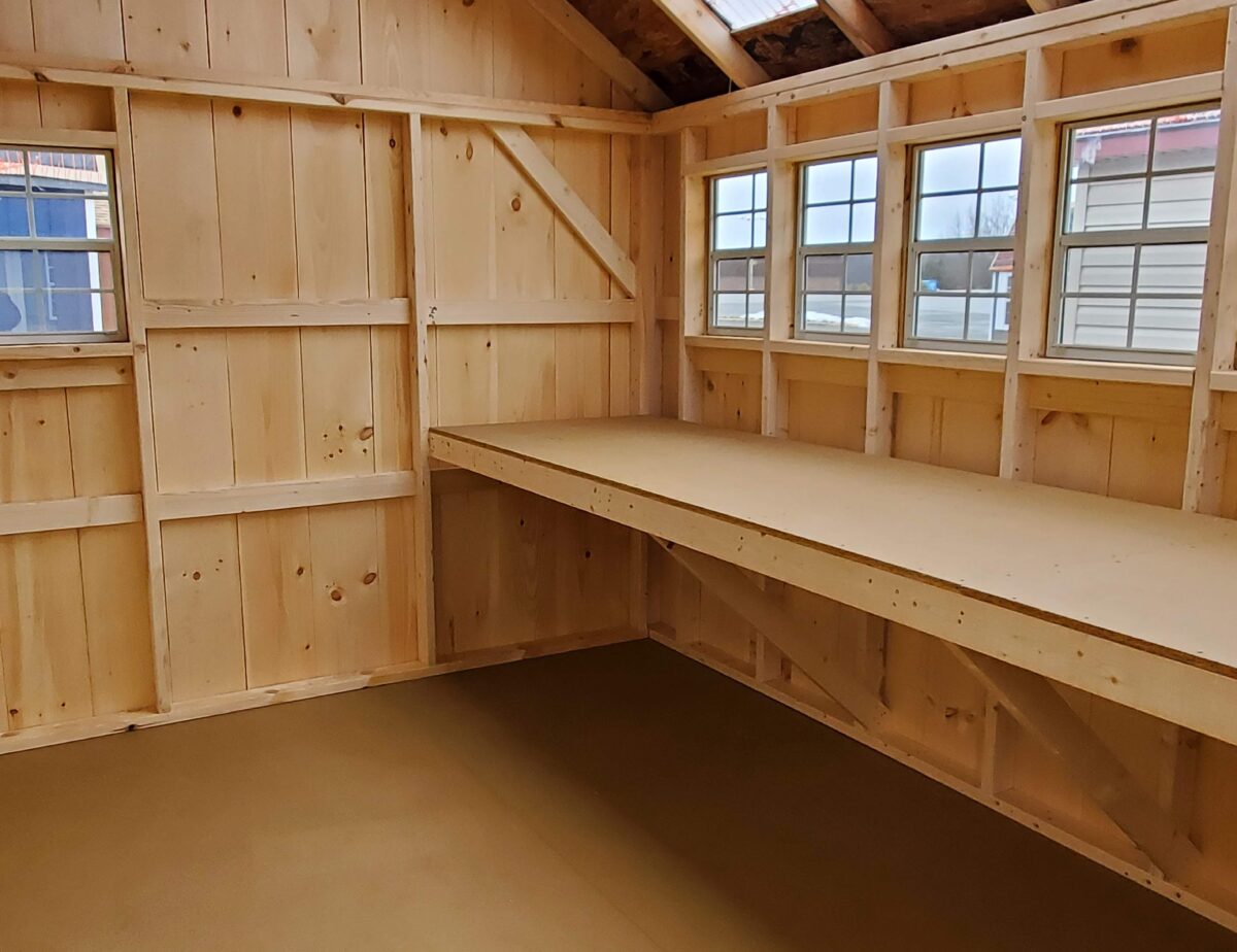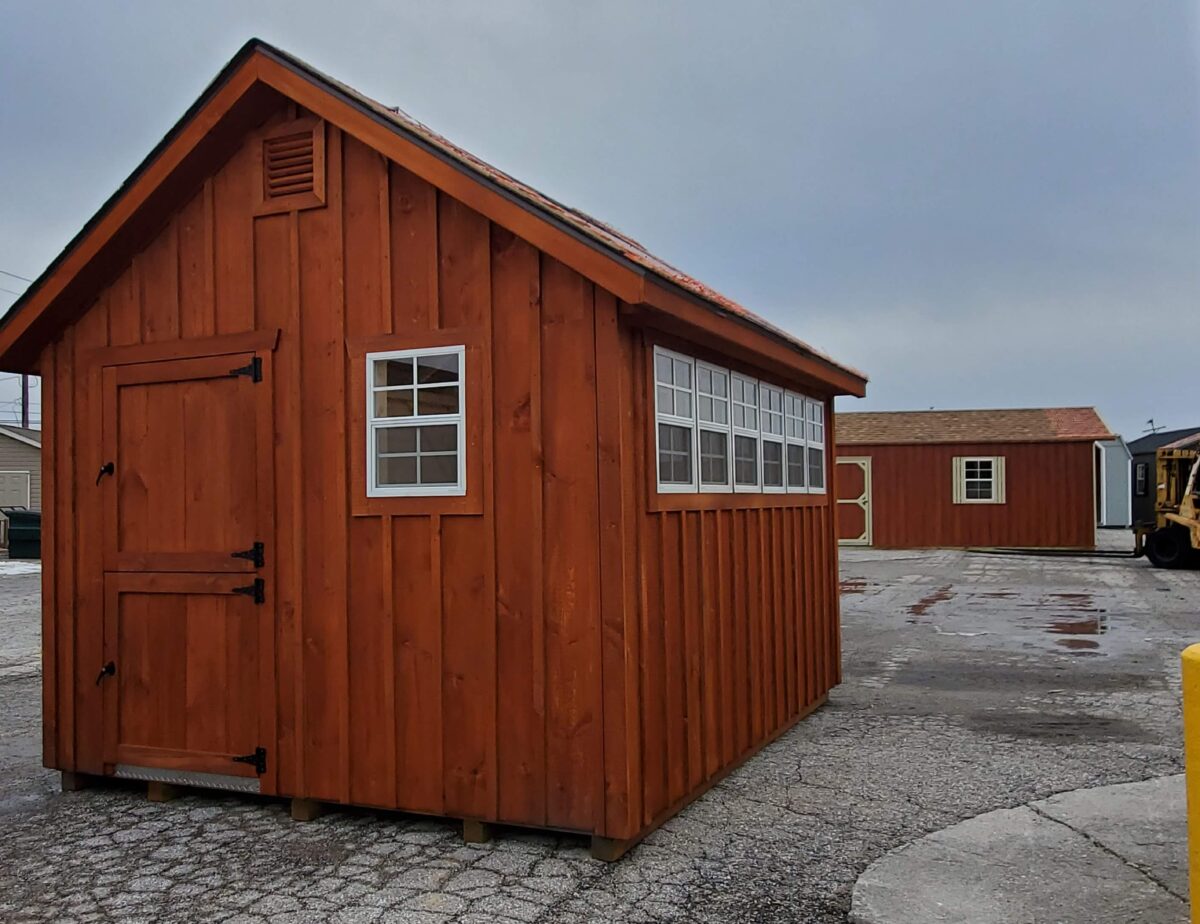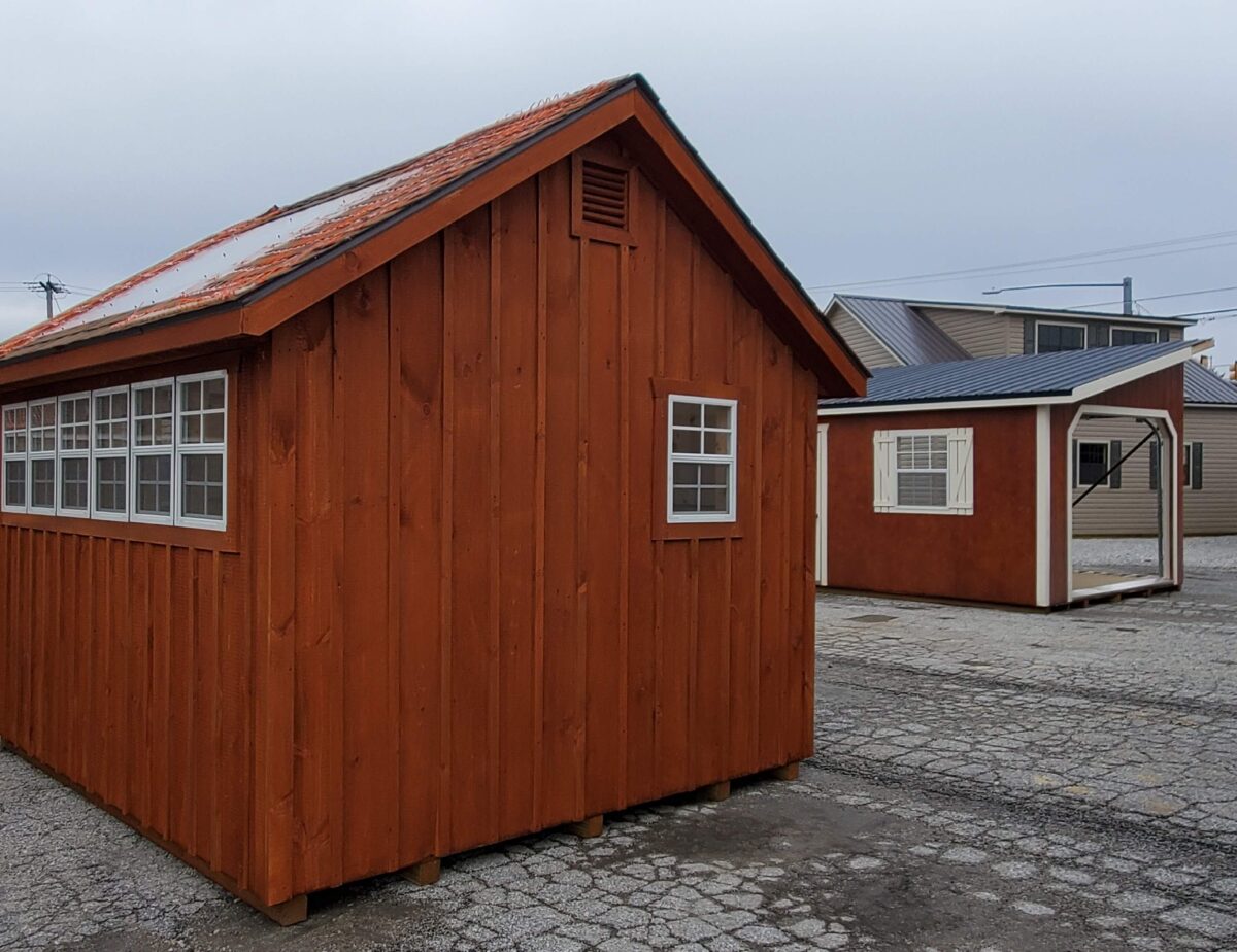 A Board & Batten Garden House made for the avid backyard Gardner. It comes with a 3′ Workbench, (8) 18″x23″ windows the length of the shed plus 2 End Vents, a Skylight and a 3′ Tread plate. Financing opportunities are available. AS IS SALE! DELIVERED WITHIN 20 MILES!