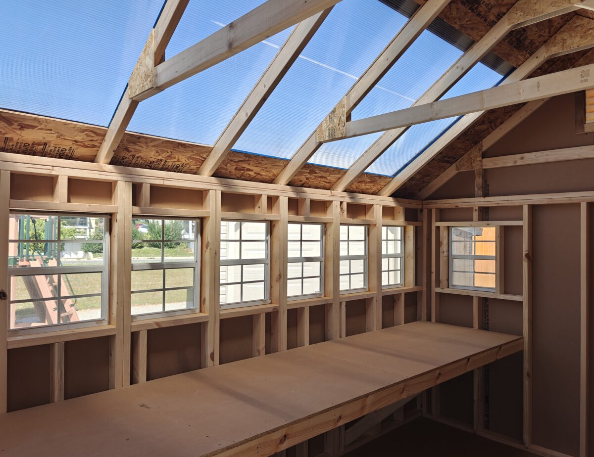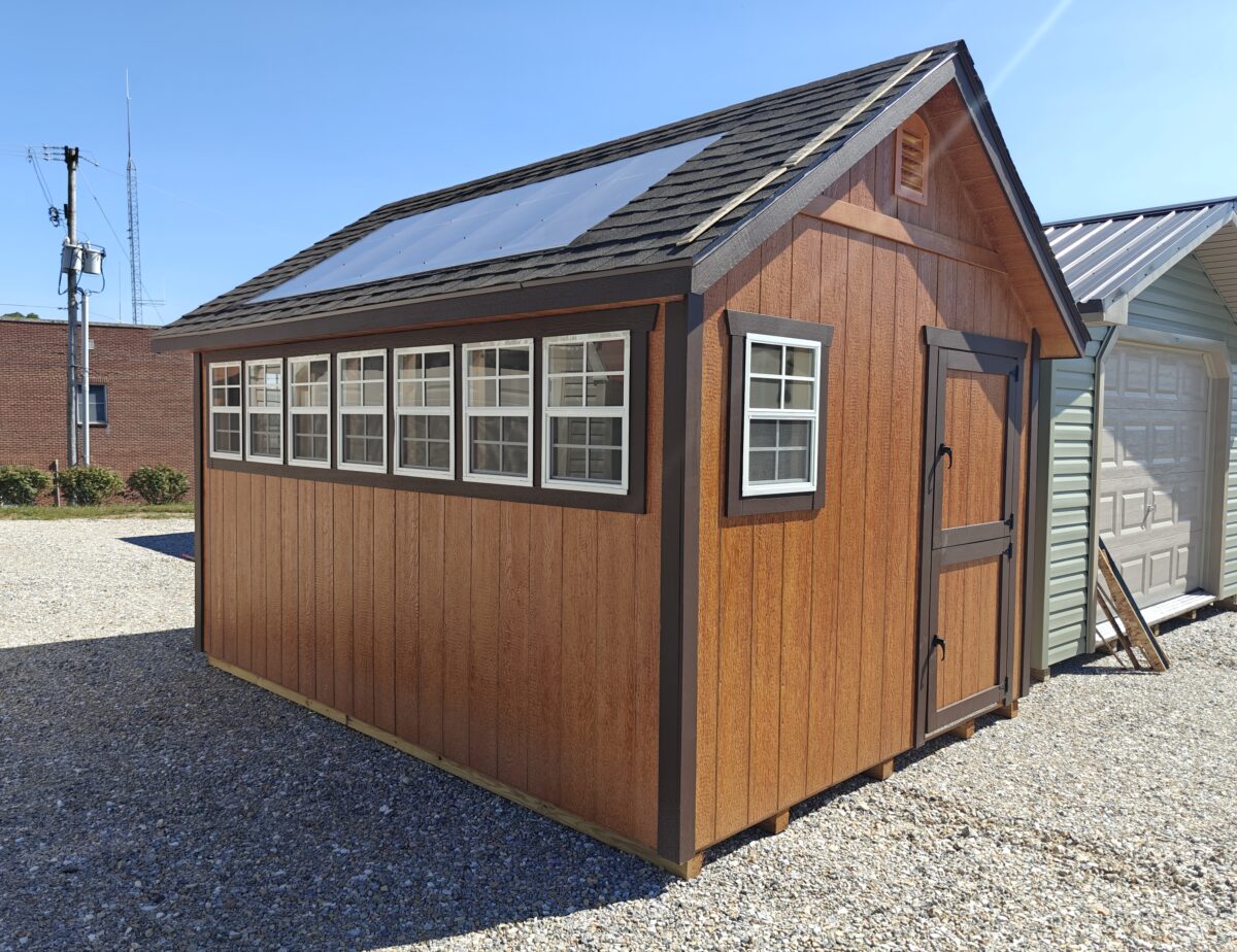 Attention Gardening Lovers! A 10 x14 “Arlington Garden House” now on display and available at our Hanover location. Eye catching with Rustic Cedar LP Siding, Brown Trim and Dutch Door. Multiple Windows and Roof Skylight provide abundant light for potting on your 14′ Workbench. A great enhancement for any back yard. For more information call Erik Waltz or Dennis at (717) 646-0771 or email hanover@pinecreekstructures.com. Financing is available as well as Rent-To-Own.
