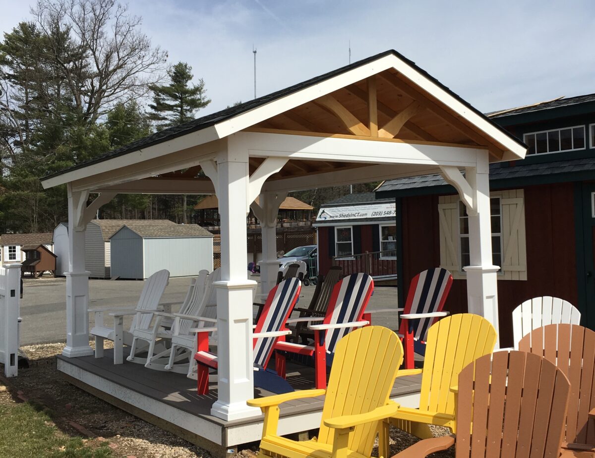 Once you are inside the pavilion and look up you will notice gorgeous 1×8 tongue and groove Eastern white pine which grants an unparalleled amount of character while having a clean look. Rent to Own not available on Pavilions – however – 0% financing based on credit approval is available!! Stop by our location at 1695 Berlin Turnpike in Berlin CT to view this in person. Stock unit sold as is.
