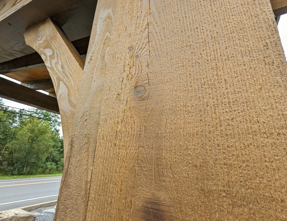 The structure uses true dimensional lumber, which offers strength and a bold, traditional look. The rough-cut hemlock provides texture and character that fits naturally into many outdoor settings. In addition, the 8×8 posts give the pavilion a sturdy foundation, and the 2×8 headers help support the roof section with ease.
