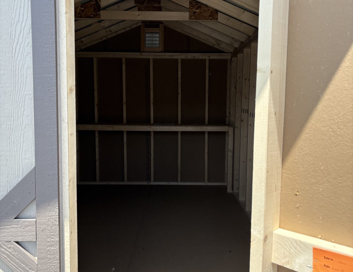 8 x 14 front peak with LP smart siding in PC clay with bronze colored trim
