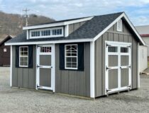 Available in Binghamton, NY: This Cape Cod comes with a Polyurethane Finish for a beautiful rich look. The 96″ Dormer lets in plenty of light and adds to the unique look of this building. All Cape Cods come with one double door and one entry door, 6’4″ interior wall height, 8″ eaves and gable overhang, and a 7/12 pitch roof on 12′ wide buildings. LP sided buildings include New England trim and hardware package. Can be used for art studios, home office, storage, work shop, and lawn mower/ATV storage.
