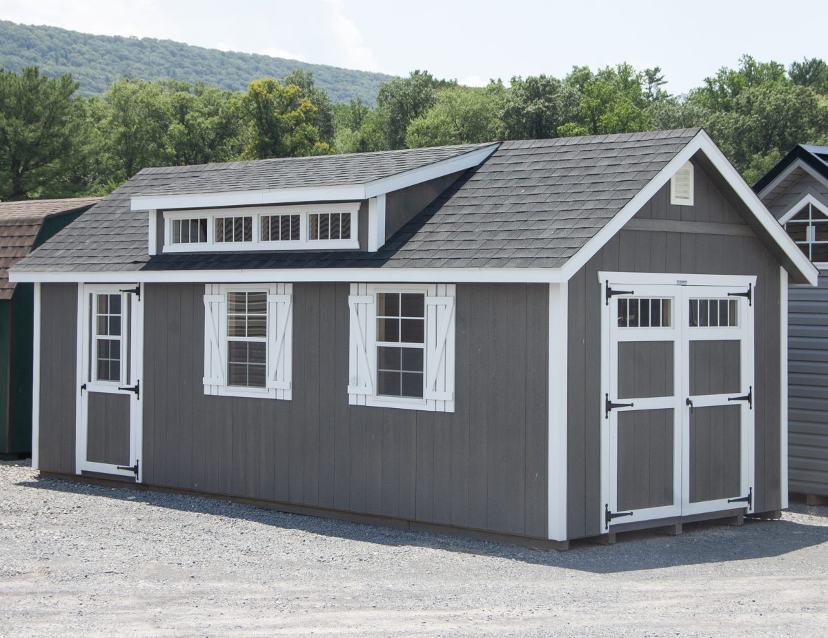 Check out this Cape Cod style shed… It includes a steeper pitched roof than your average peak shed, 8″ roof overhangs on all sides, and two doorways. Our Amish craftsmen also added a cape dormer to the roof for added eye appeal and extra natural light inside. Rent To Own and Financing programs are available to make your building more affordable.