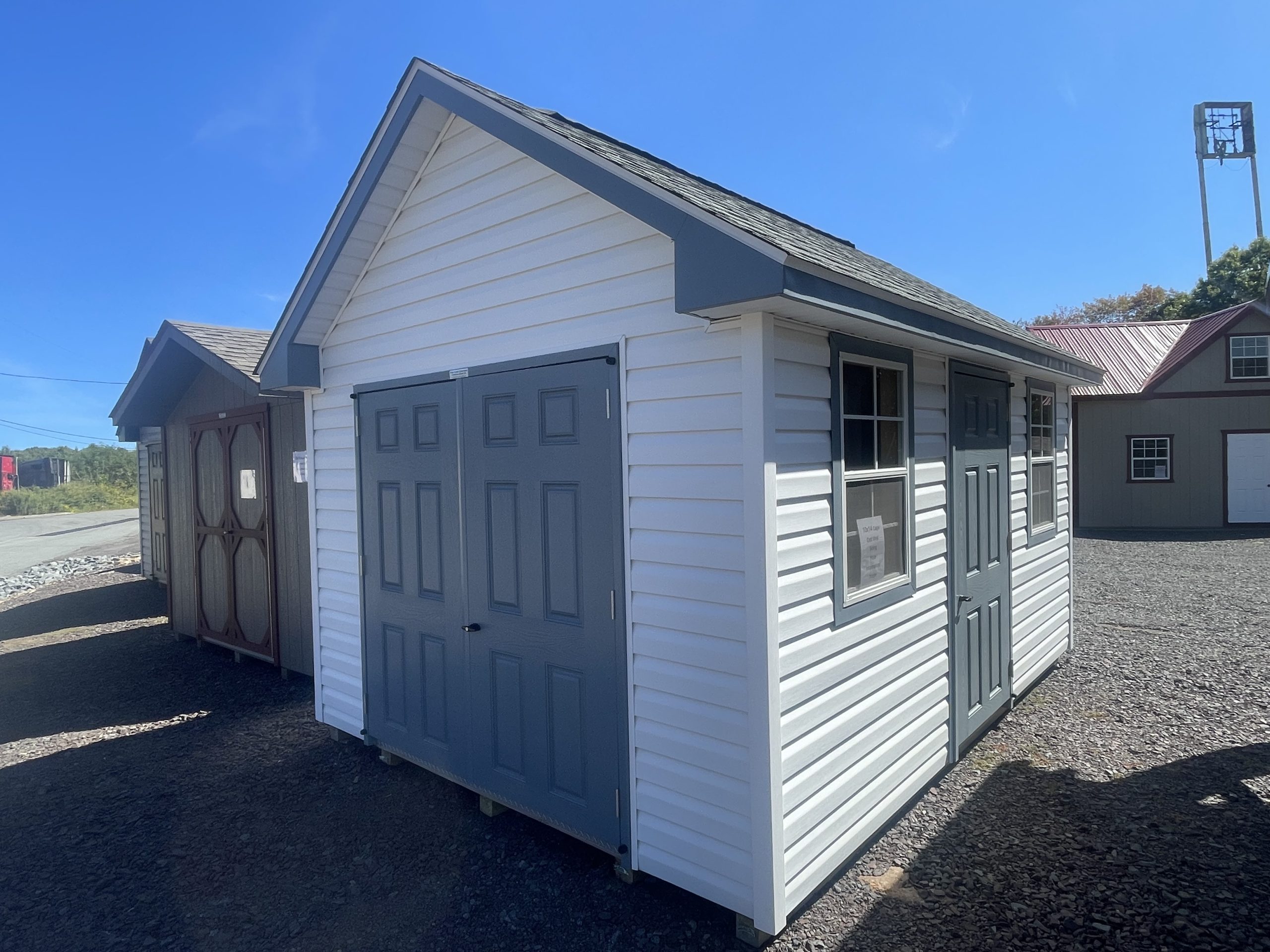 This Amish built 10×14 Maintenance-free Vinyl Sided Cape Cod Style Shed with “Lifetime” Siding and ARC Shingles, 5/8″ PerforMax floor sheeting will provide a lifetime of continuous service with no maintenance. Smart, stylish and functional. That’s the VALUE of a Pine Creek Structures Shed.