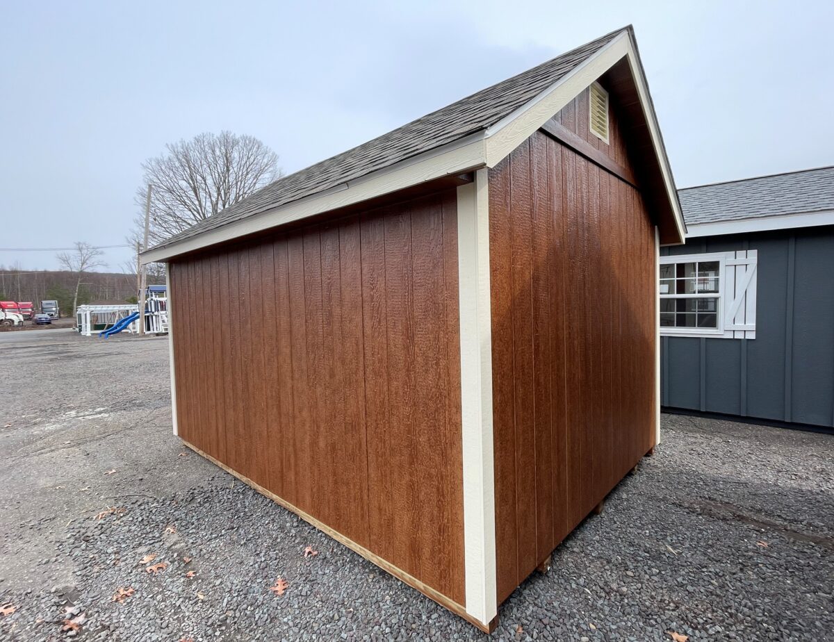 This Amish Built 10×14 Cape Cod comes with a 50-Year MFG Warranty from LP. The Cape Cod series is a practical, sturdy design with a classic appearance. The eye-appeal of this model is enhanced by a steeper roof pitch than the average storage building. Increasing attractiveness, an 8″ roof overhang on all sides also offers extra weather protection for your structure.. We’ve also added a diamond tread plate at the doorway for extra protection and durability in this high traffic area.