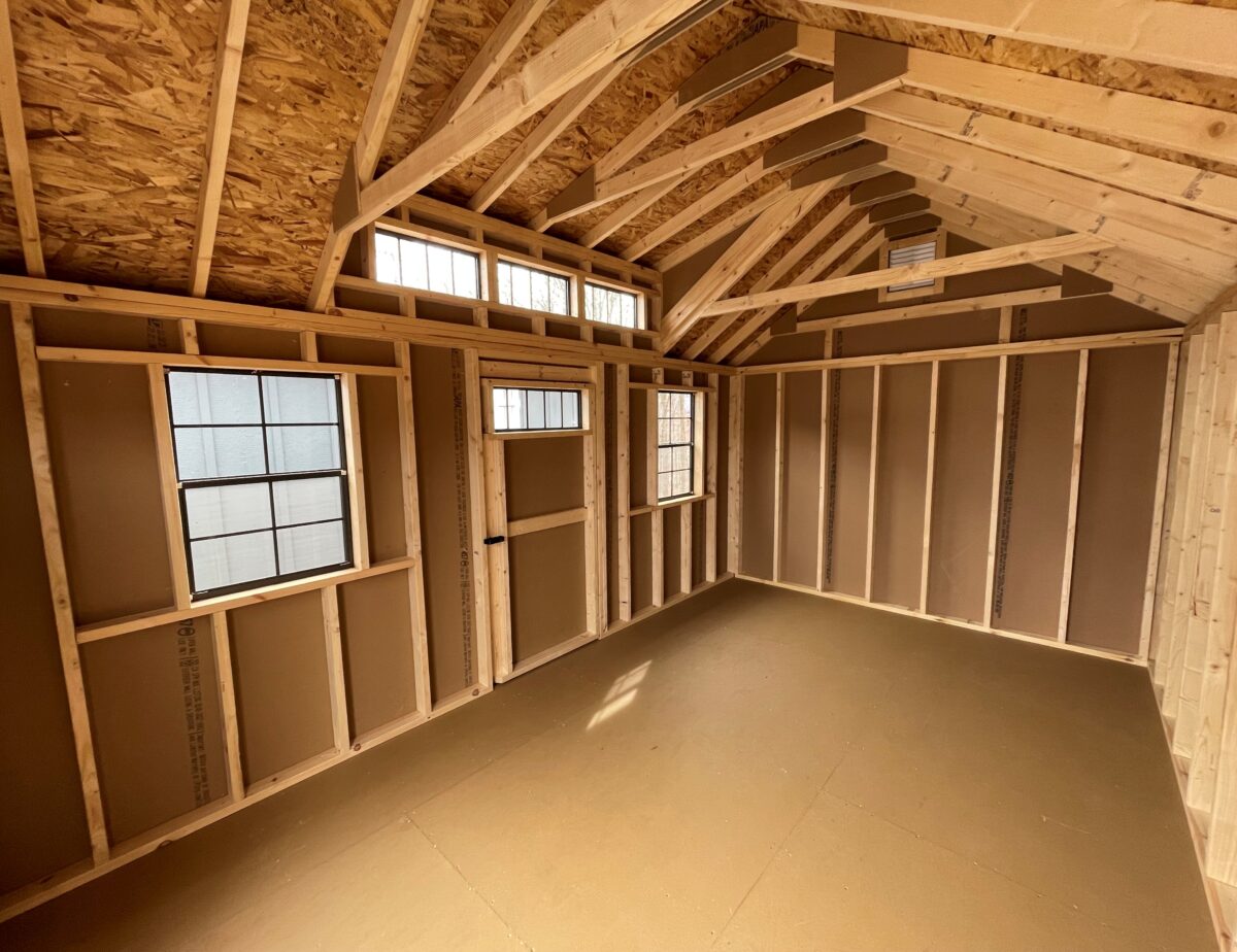 We build it better with 4×4 pressure treated runners, double top wall plates (with interlocking corners), 5/8” engineered floor sheathing, and 2×4 wall and rafter studding on 16″ centers. We’ll deliver it as you see it, fully assembled and ready to use!