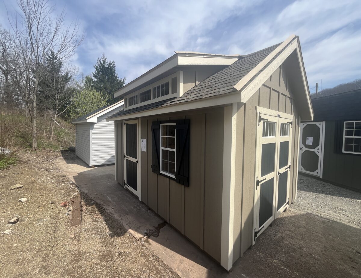 Both a double and single door. 4′ × 10′ loft provides additional overhead storage.