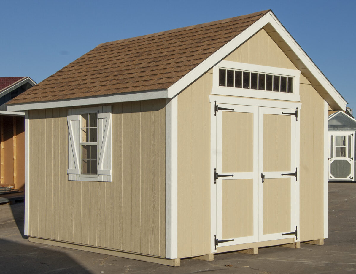 Check out this Cape Cod style shed… It includes a steeper pitched roof than your average peak shed and an 8″ roof overhang on all sides. On a monthly budget? We can help! Ask about our Rent To Own and Financing programs.
