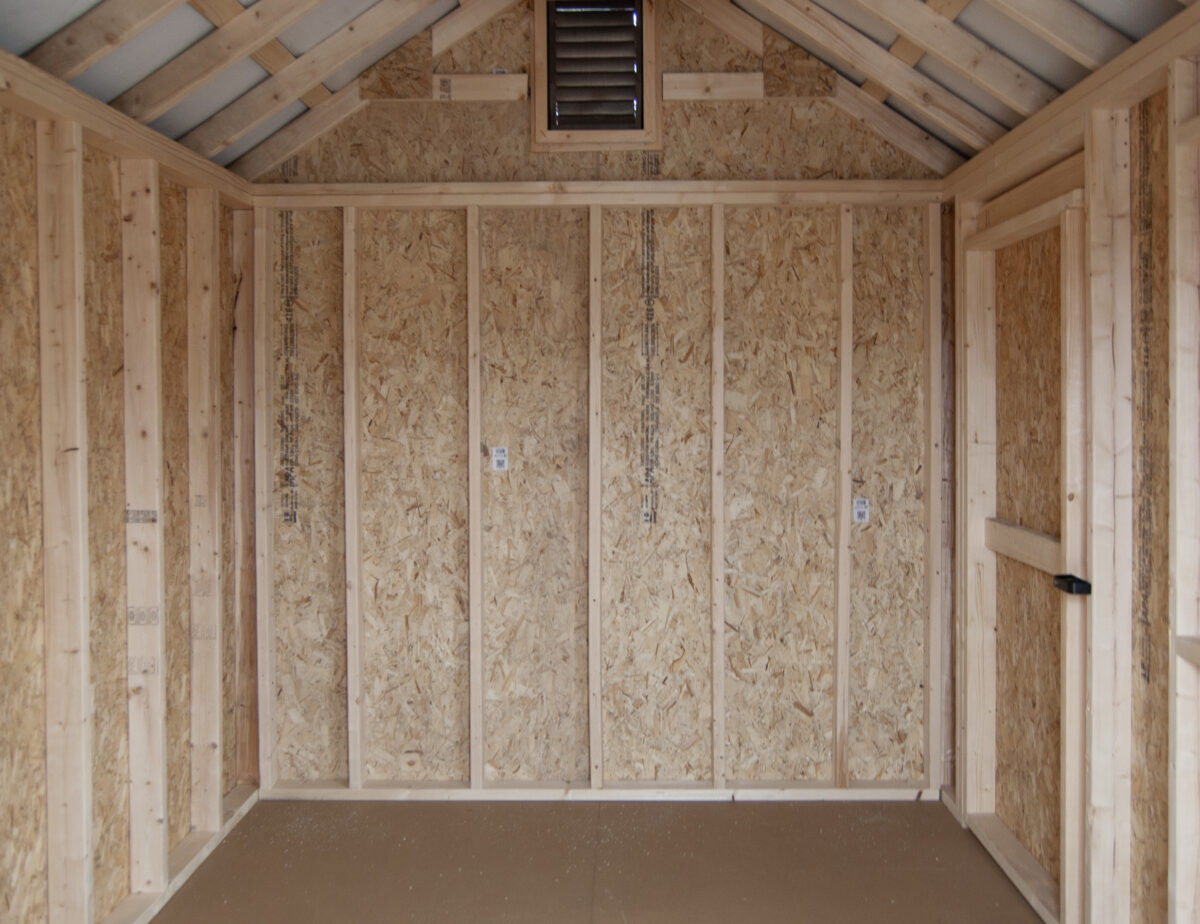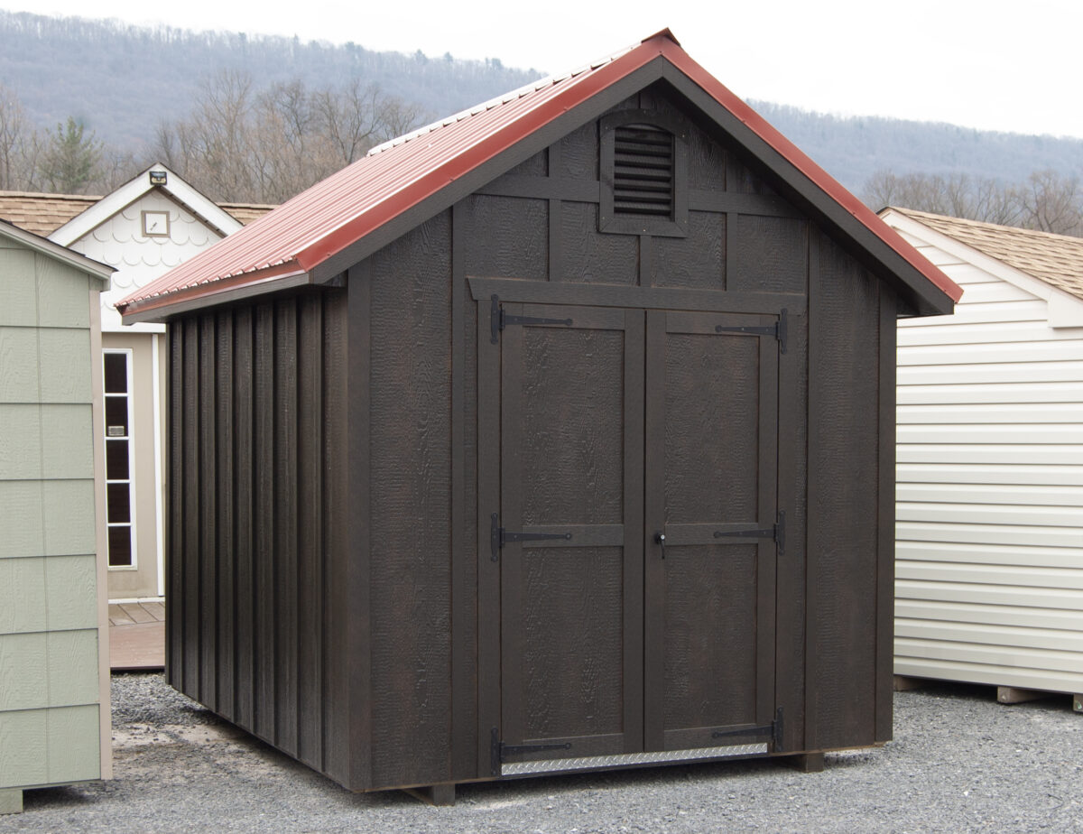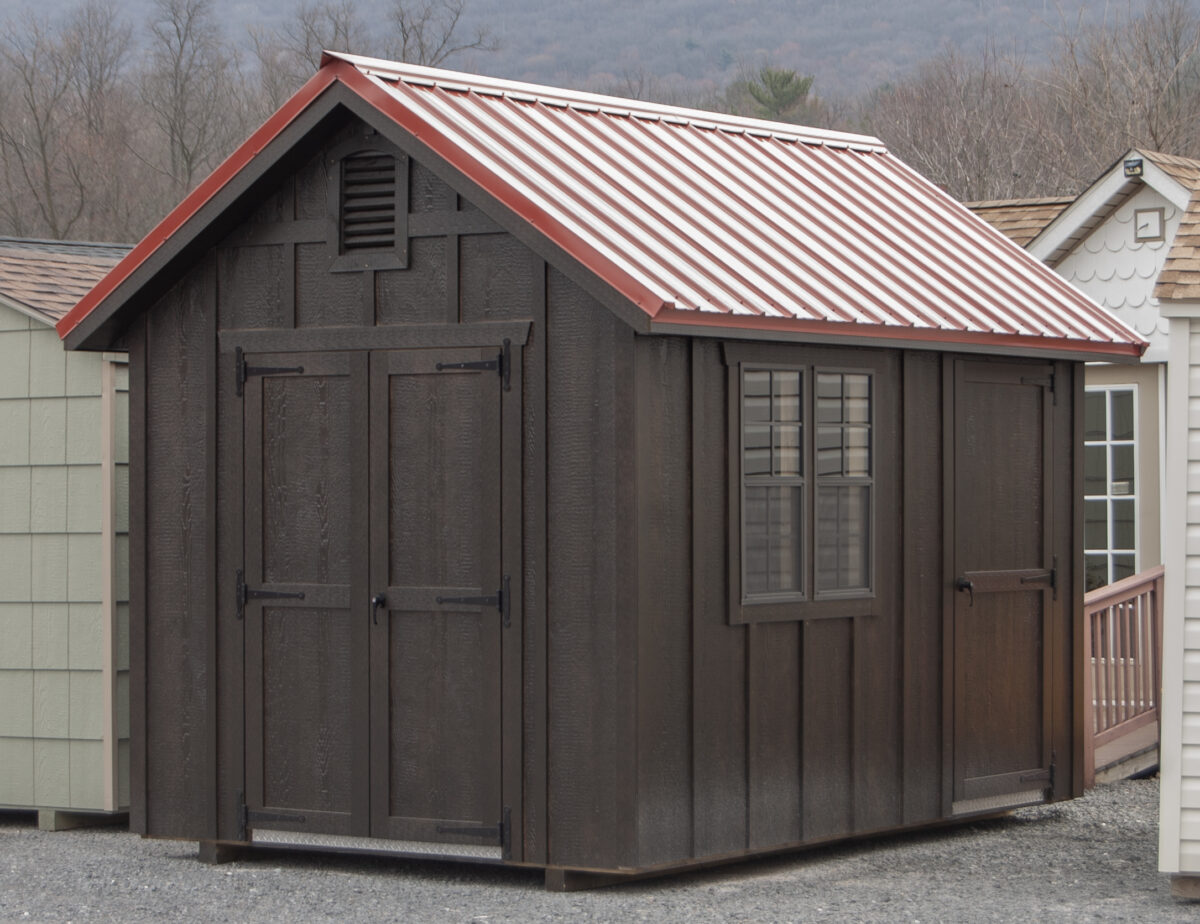 Introducing our NEW Ebony polyurethane color choice! When combined with the LP Board ’N’ Batten Siding, this building his beautiful look of dark stained wood board and batten siding, with the strength of LP’s engineered siding. We even upgraded the roof from shingles to a red metal roof with double bubble insulation.