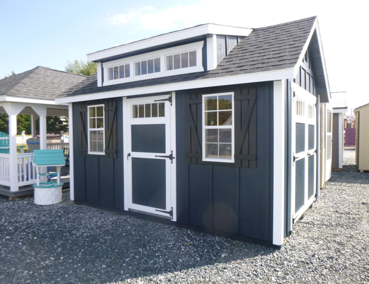 This 10×14 Cape Cod has LP Board & Batten siding from LP that comes with a 50-Year MFG Warranty! The Cape Cod series is a practical, sturdy design with a classic appearance. The eye-appeal of this model is enhanced by a steeper roof pitch than the average storage building. Increasing attractiveness, an 8″ roof overhang on all sides also offers extra weather protection for your structure.. We’ve also added a diamond tread plate at the doorway for extra protection and durability in this high traffic area.