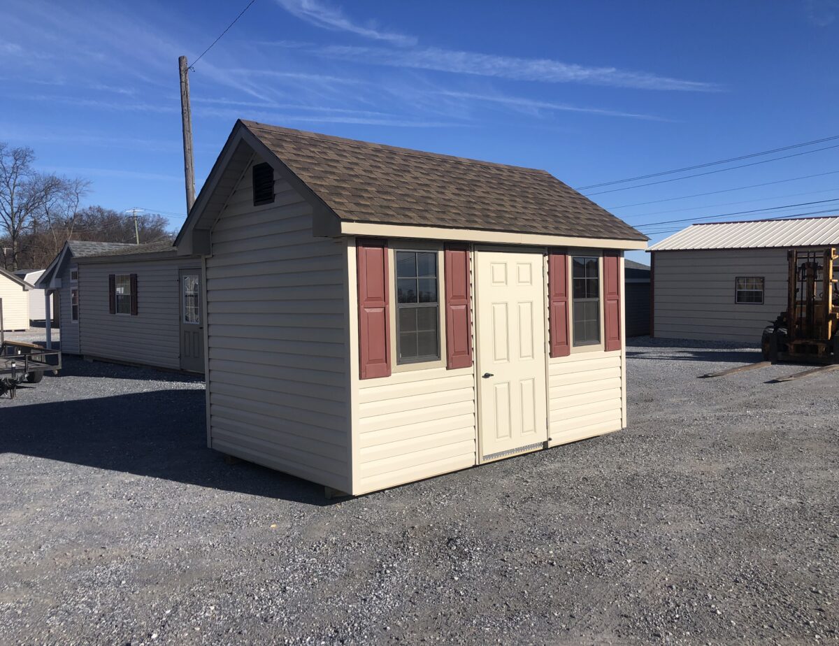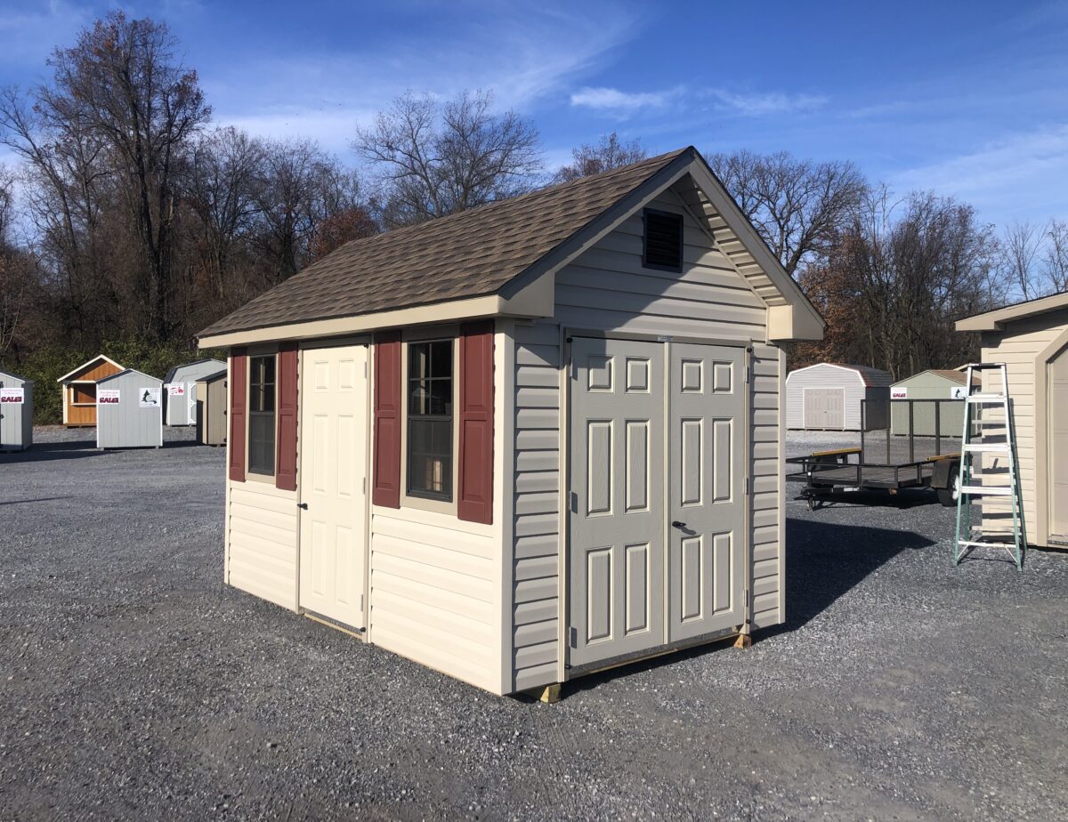 This 8×12 Cape cod building will dress up your back yard. call 717-361-8986 or etown@pinecreekstructures.com After hours call 717-629-9544. this building comes with a 4′ & 36″ fiber glass doors with diamond plate at both doors, 2 windows with screens, 5/8 treated & coated engineer flooring, and 2 end vents for air flow.