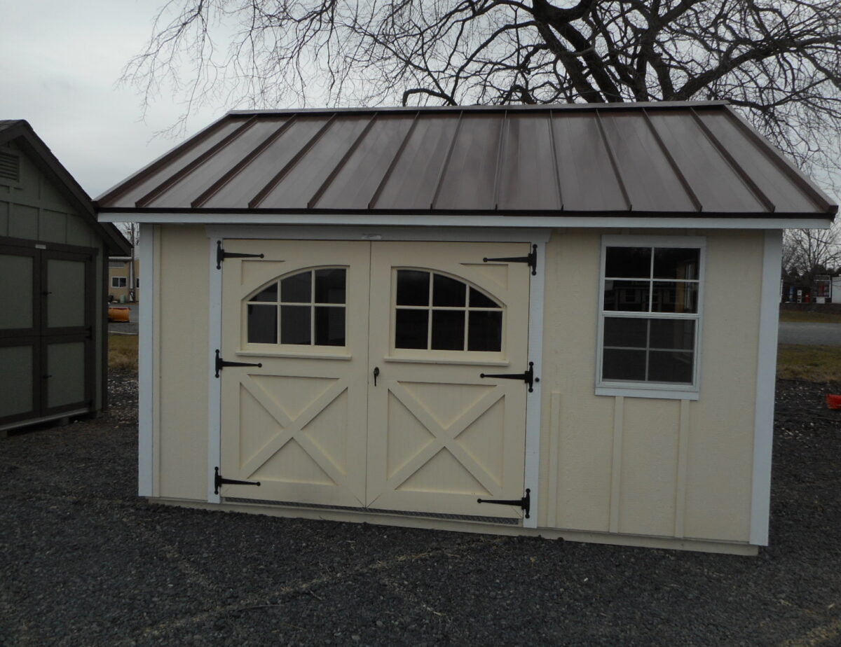 The Cape Cod Series is a practical, sturdy design with a classic appearance. The eye-appeal of this model is enhanced by a steeper roof pitch than the average storage building. Increasing attractiveness, an 8” roof overhang on all sides also offers extra weather protection for your structure. Cape Cod models are available in a variety of sizes in 6 popular siding choices with over 30 colors to choose from. All Cape Cod style sheds include a single entry door, a double door, and two windows. Doors and windows can be spaced as desired at no additional charge!