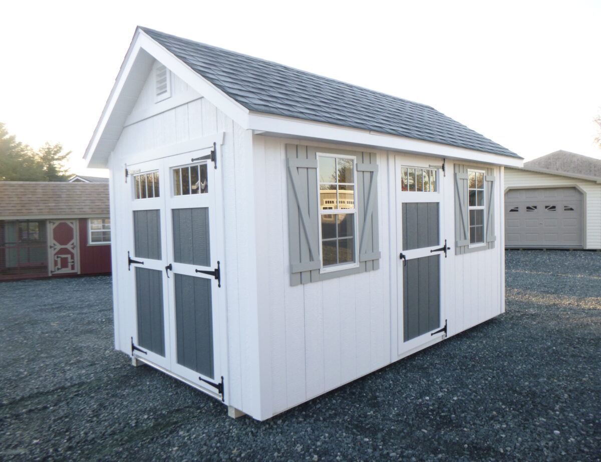 This 10×14 Cape Cod has LP Smartside from LP that comes with a 50-Year MFG Warranty! The Cape Cod series is a practical, sturdy design with a classic appearance. The eye-appeal of this model is enhanced by a steeper roof pitch than the average storage building. Increasing attractiveness, an 8″ roof overhang on all sides also offers extra weather protection for your structure. We’ve also added a diamond tread plates at the doorways for extra protection and durability in this high traffic area.