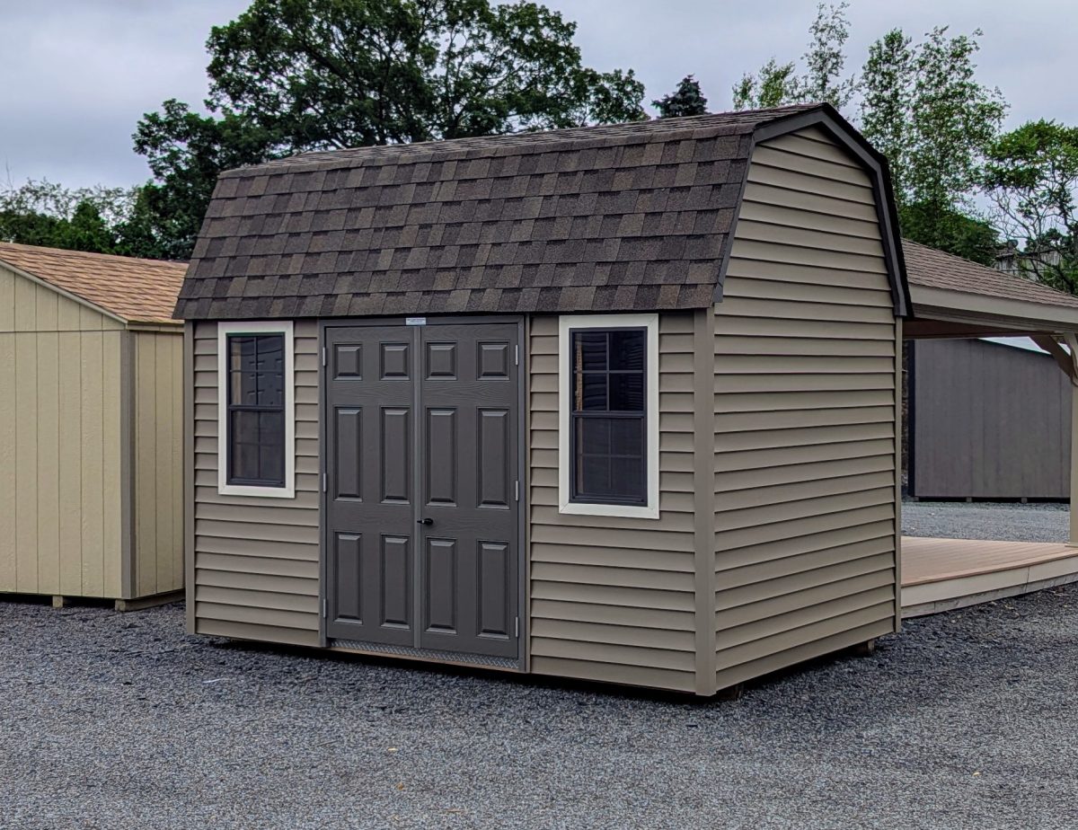 A Dutch Barn design offers extra headroom, rugged construction, and a classic barn-inspired look. The 8×12 Dutch Vinyl Shed combines that design with a durable vinyl exterior, solid roofing, and clean Bronze accents. Whether you’re storing yard tools, seasonal décor, or outdoor gear, this shed delivers reliable performance in a compact package.