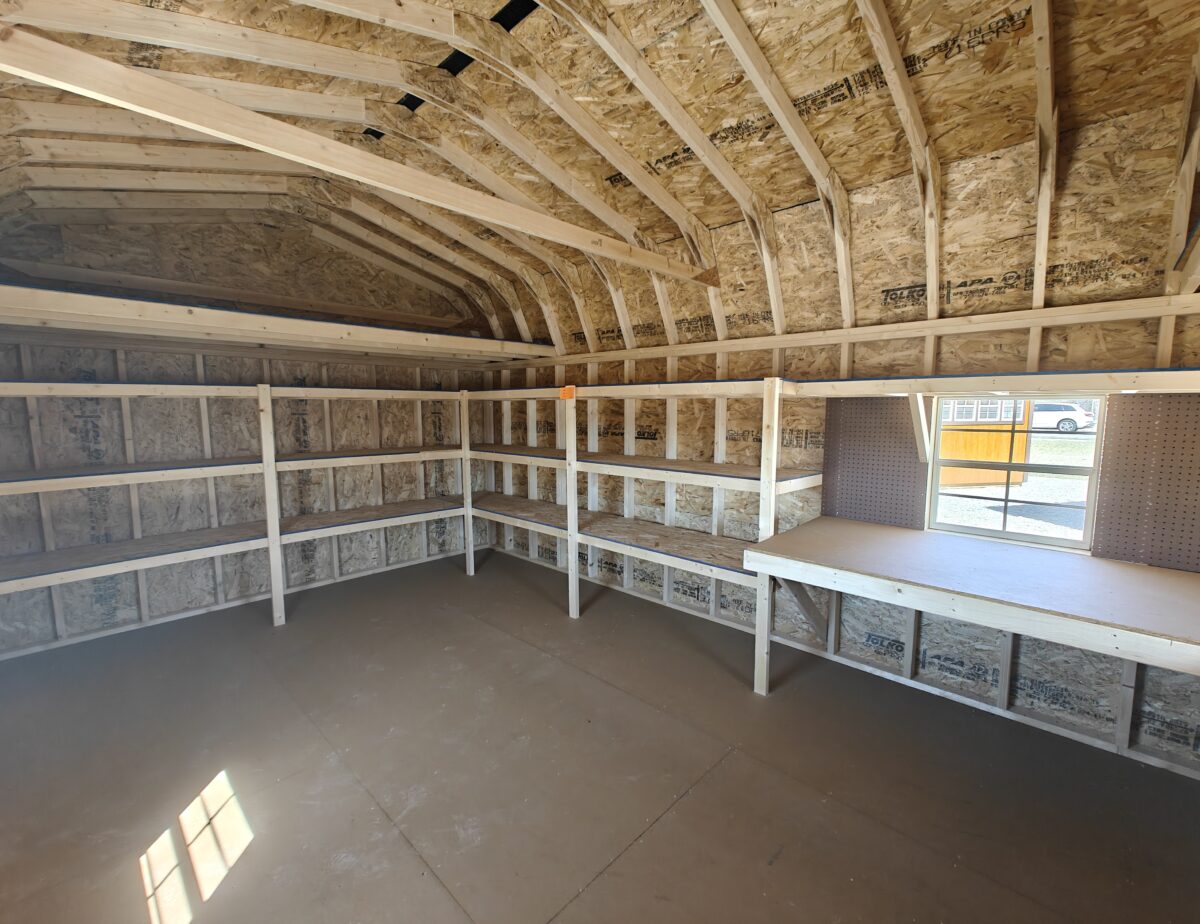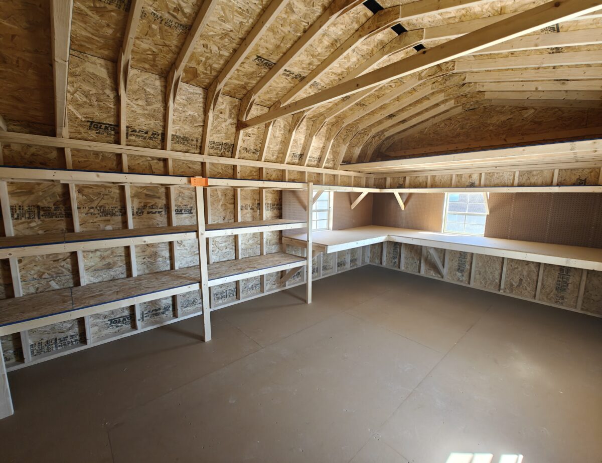 Half Workshop & Half Storage Shed! Perfect set-up to work on projects and loads of room for everything else! Includes a heavy duty L shaped work bench, 2 overhead lofts and a multitude of shelving. Plus enough space left over to park your yard tractor & more. For additional info call Eric Waltz or Dennis at 717-646-0771. Financing plans available. Come check it out.