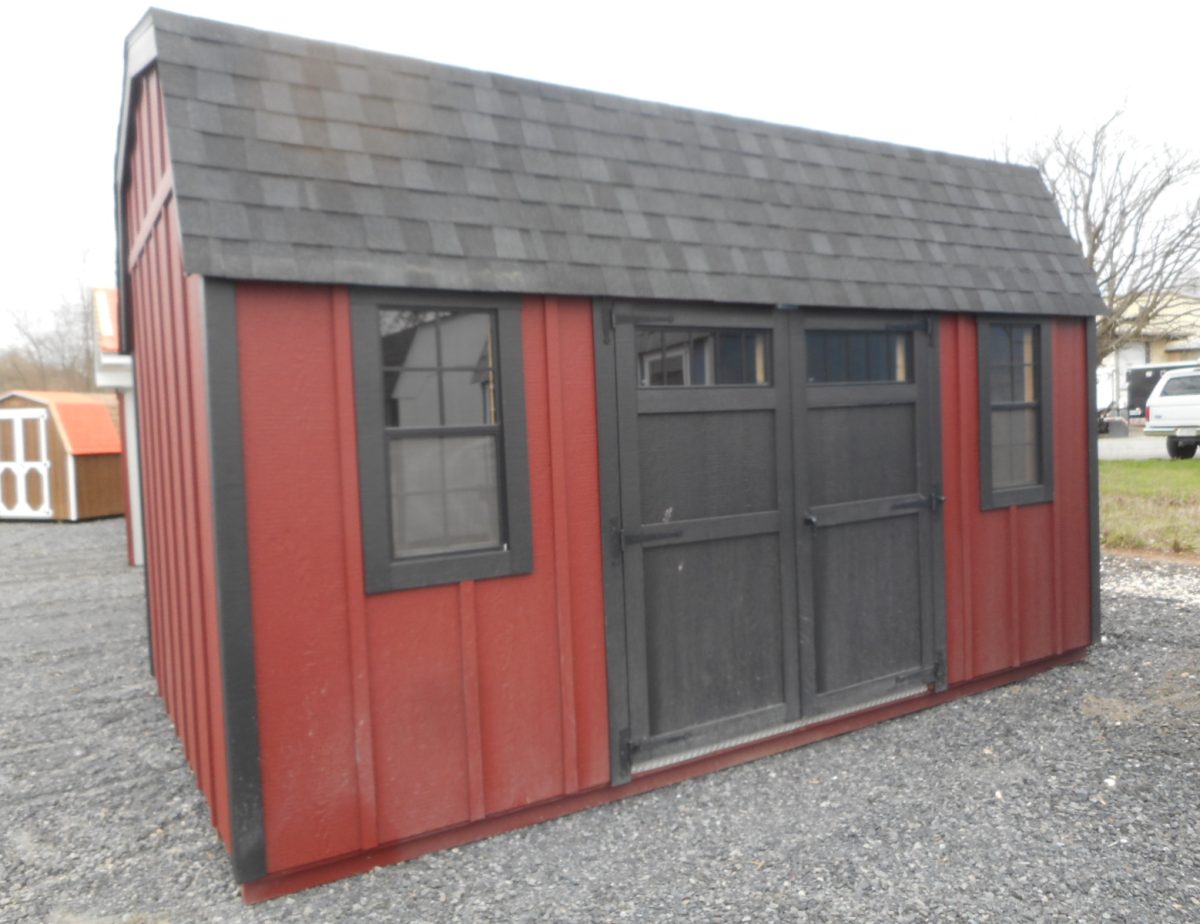 Dutch barn style storage sheds include one double door and two windows. Doors and windows can be placed as desired! 6-foot wide buildings include one 36” entry door and one window due to space restrictions.