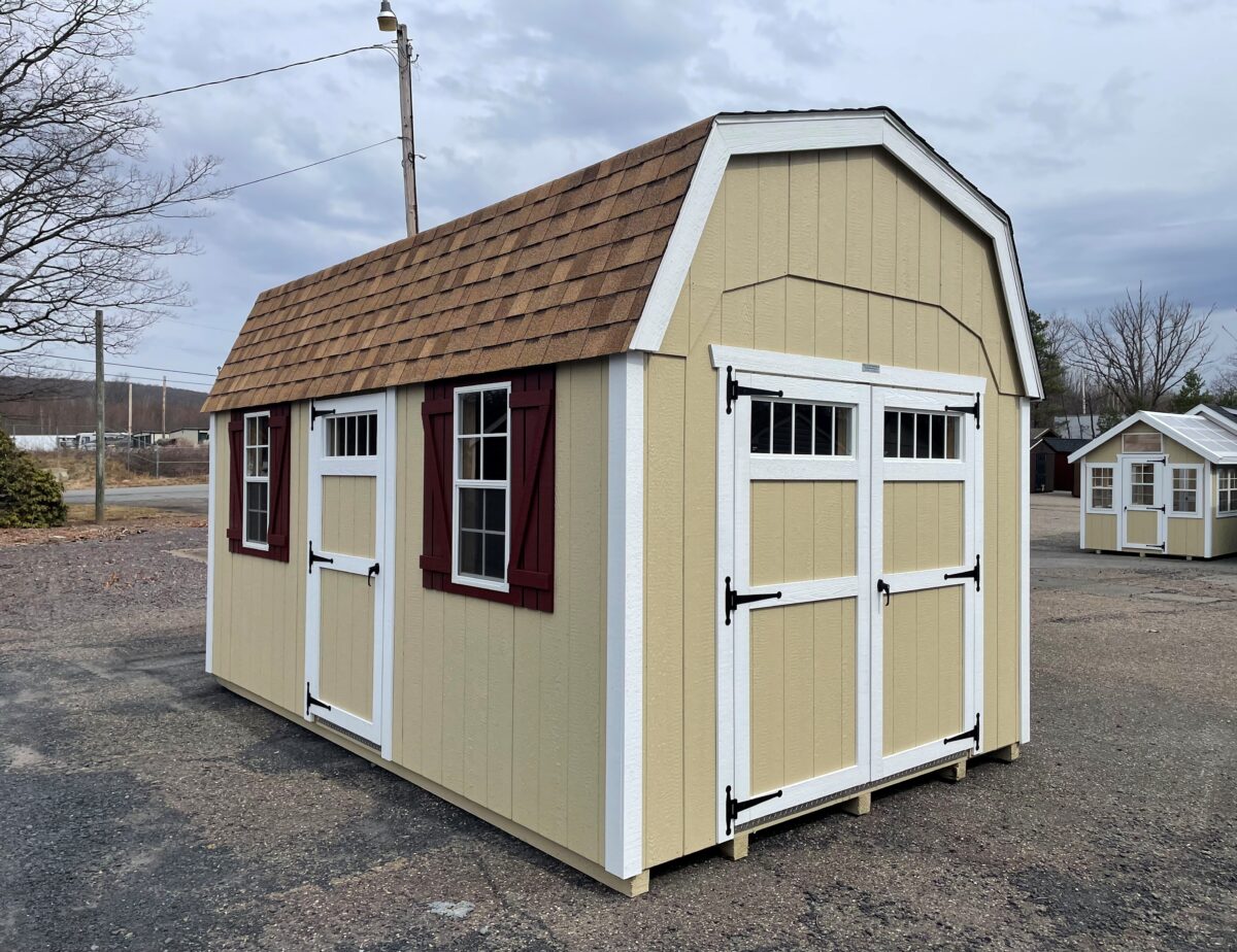 A Dutch Barn design offers extra headroom, classic charm, and sturdy construction. This Amish built 10×14 Dutch Barn Shed combines that design with LP SmartSide durability, clean trim details, and a balanced color combination. Whether you’re storing tools, equipment, or seasonal supplies, this shed provides lasting performance and a dependable place for your belongings.