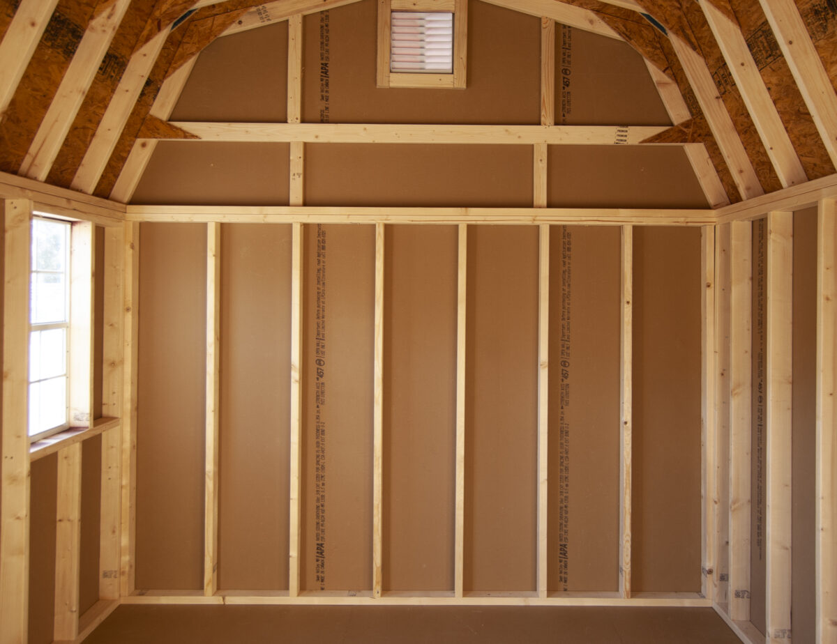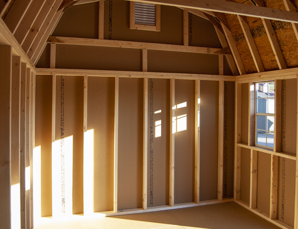 - Quality Built with 4x4 pressure treated runners, double top wall plates (with interlocking corners), 5/8'' engineered floor sheathing, and 2x4 wall and rafter studding on 16" centers
