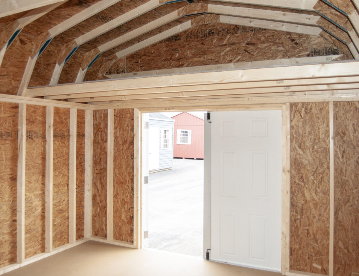 - Heavy Duty construction with 4x4 pressure treated runners, double top wall plates (with interlocking corners), 5/8'' engineered floor sheathing, and 2x4 wall and rafter studding on 16" centers
