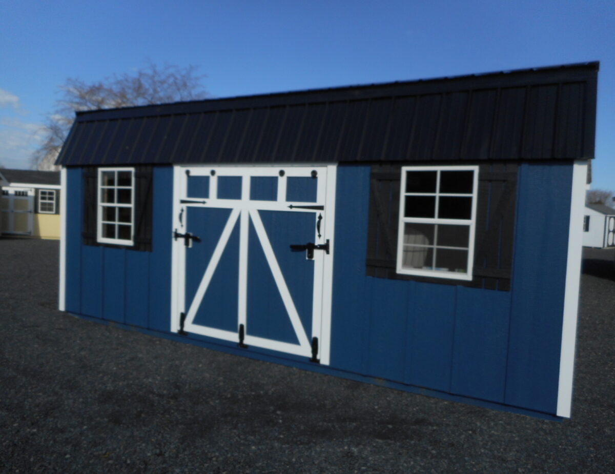 Take a look inside this shed.. The barn style roof allows for tons of room for overhead loft inside!. We have already installed (2) Lofts for your storage needs! The LP Smartsiding on this building comes with a 50 year warranty. There’s a Metal Ridgevent already installed to help the air inside your build circulate, especially on those warm summer days! Included are (2) 24″ x 36″ windows. This building has the New Rampage door, a door and a built in Ramp for getting the bigger items in and out!
