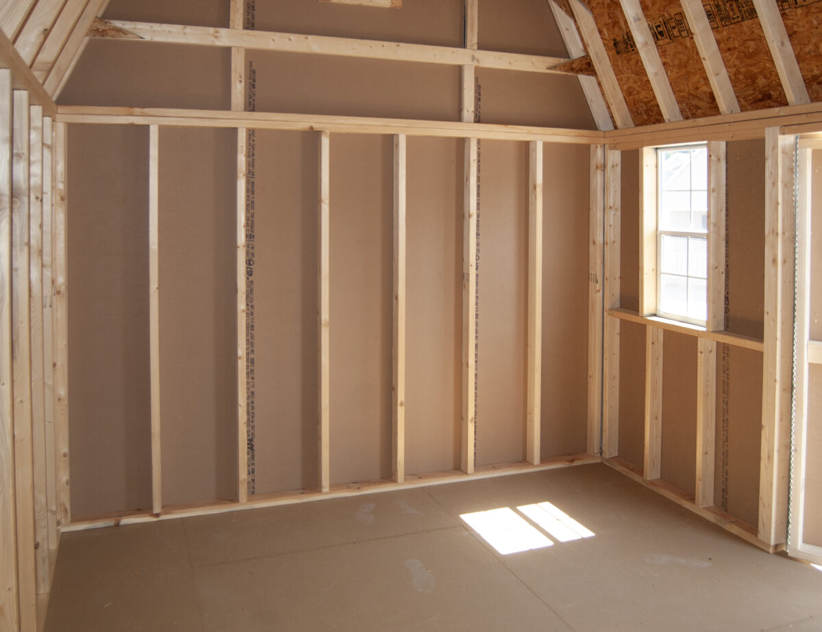 - Quality Built with 4x4 pressure treated runners, double top wall plates (with interlocking corners), 5/8'' engineered floor sheathing, and 2x4 wall and rafter studding on 16" centers