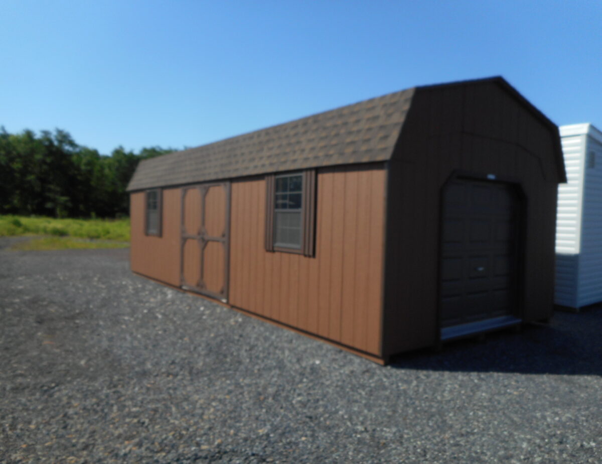The Dutch barn offers the greatest amount of storage space and customers who are interested in this model often choose to have a loft which adds to the amount of storage space. Dutch barns come standard with one double door and two windows. Just like the Cape Style store shed this building is at the maximum height that is allowed to be shipped So you cannot raise the wall height. Additional 42″ of storage space is available in the rafters, which is great for ladders or lumber storage and all that other good stuff you may use someday!