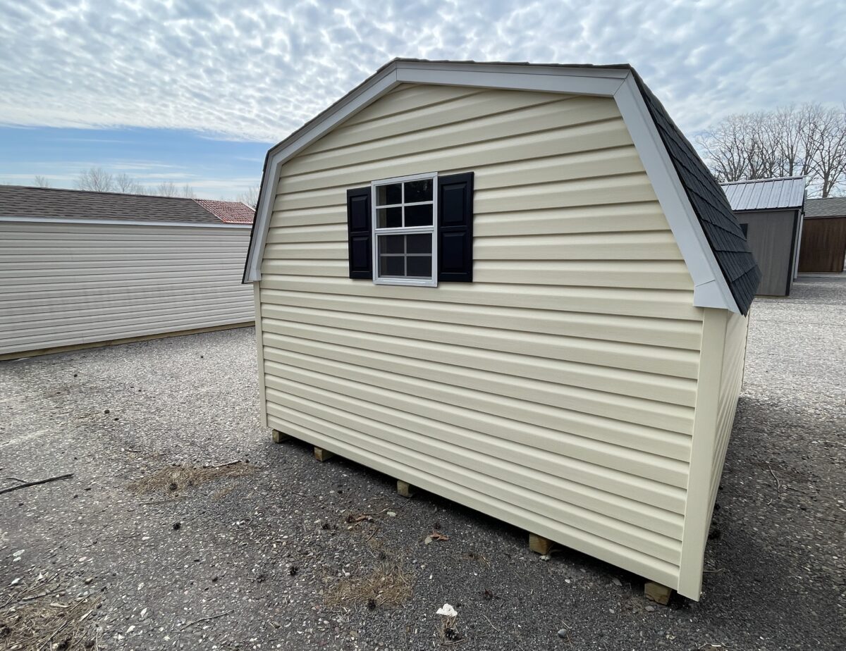This Amish built 10×12 HD Mini Barn gives you plenty of room for storage, a double door in the front, and a window in the back for natural lighting. it’s lower profile make it ideal for delivery into an area with height restrictions.