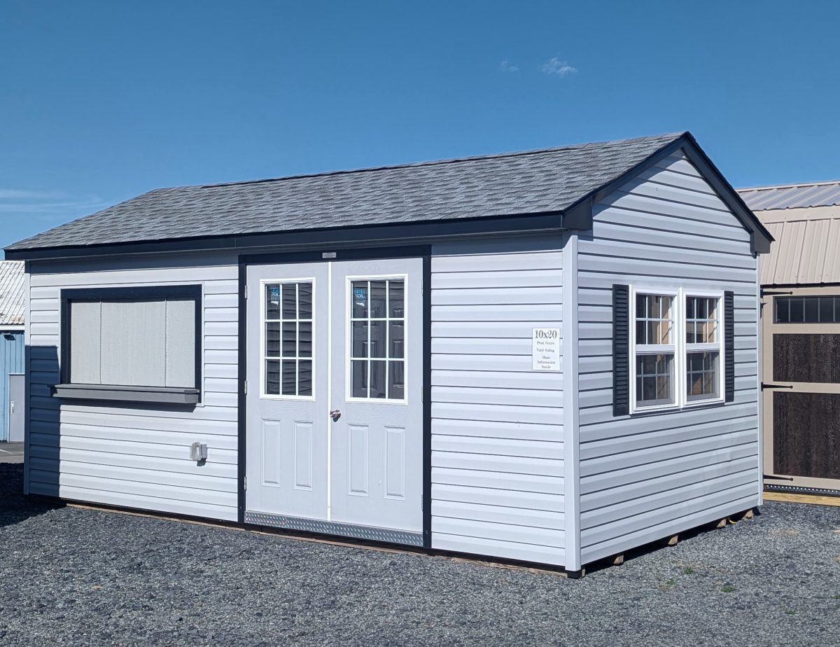 With its insulated interior, upgraded windows, pine finish, concession window, and electrical setup, the 10×20 Finished Interior Peak Shed gives you a ready-to-use space that adapts to many needs.