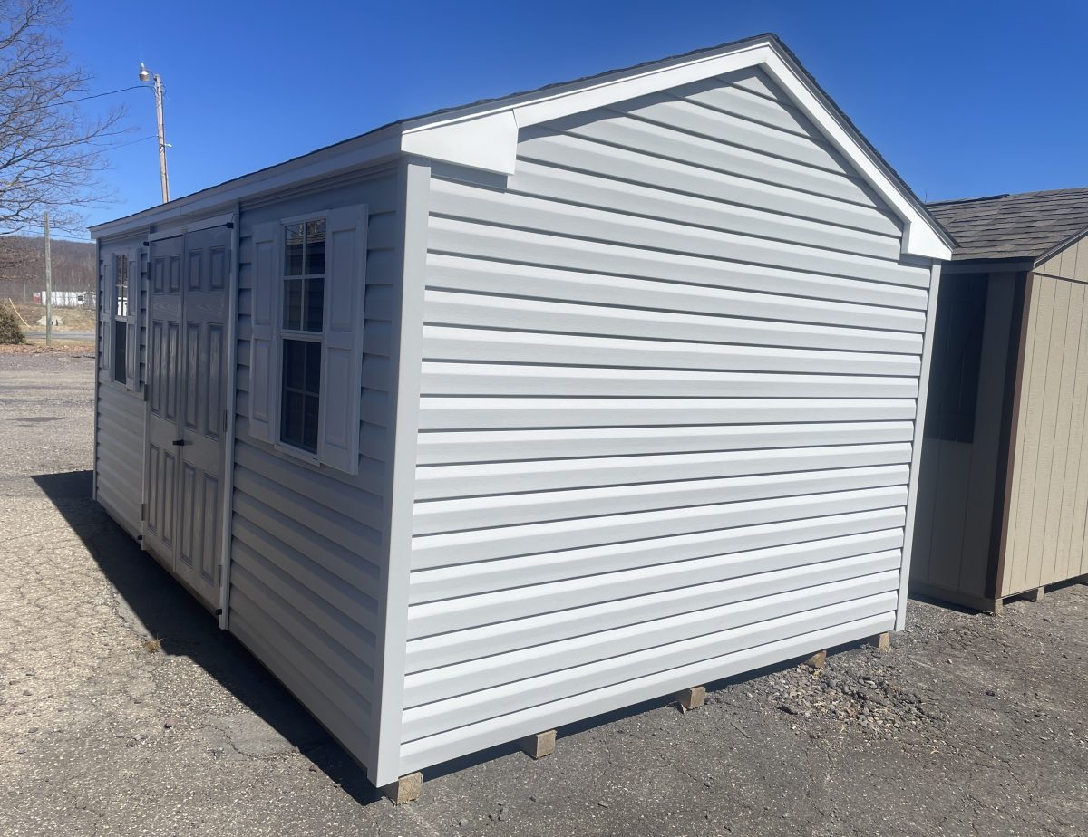 This Amish built maintenance-free vinyl sided 10×16 Peak Side Entry, you can store all your gear with ease in this storage shed! It’s double doors allow easy access for lawn movers, tools, and other large items. It’s superior construction includes 4×4 pressure treated runners, double top wall plates (with interlocking corners), 5/8” engineered Performax floor sheeting, and 2×4 wall and rafter studding on 16″ centers. We don’t settle on lumber quality… we use only top quality lumber on your structure!