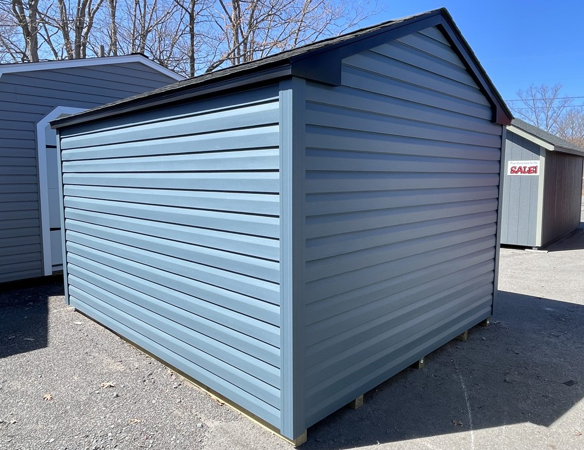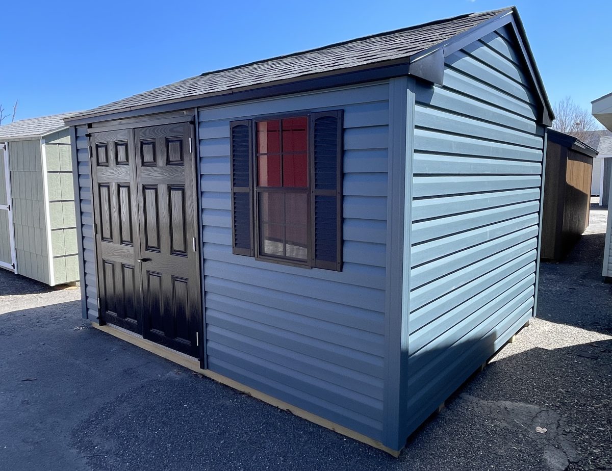 This Amish build maintenance-free vinyl sided 10×12 Peak Side Entry, you can store all your gear with ease in this storage shed! It’s double doors allow easy access for lawn movers, tools, and other large items. It’s superior construction includes 4×4 pressure treated runners, double top wall plates (with interlocking corners), 5/8” engineered Performax floor sheeting, and 2×4 wall and rafter studding on 16″ centers. We don’t settle on lumber quality… we use only top quality lumber on your structure!