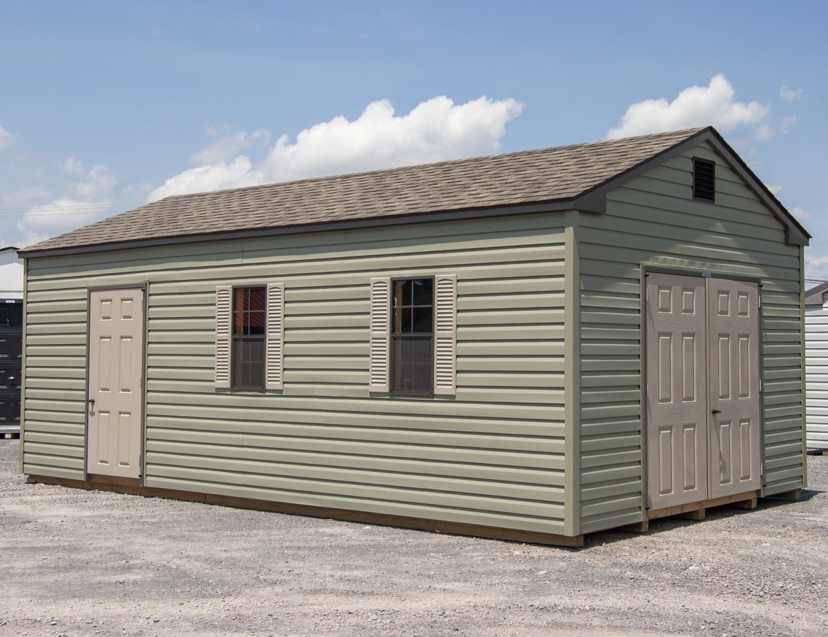 Our Peak style sheds are one of our most popular styles because compliment practically any home. There’s even two different doorways on this shed; No more climbing over boxes and tools to get to the stuff in the back of your shed! We’ve also installed two 12″x12″ gable end vents to help the air inside your building circulate, especially in those warm summer months. Ask about our available financing programs!