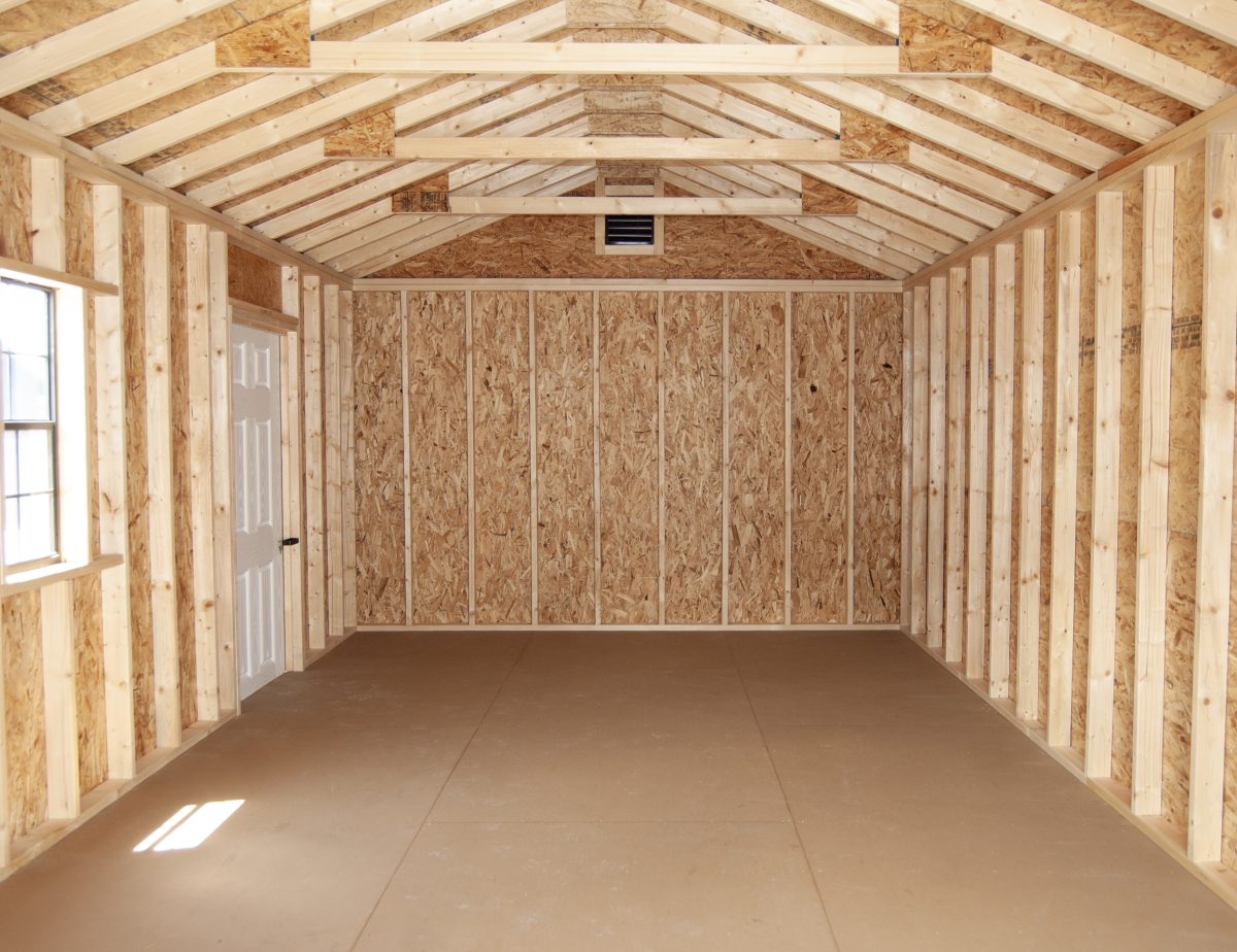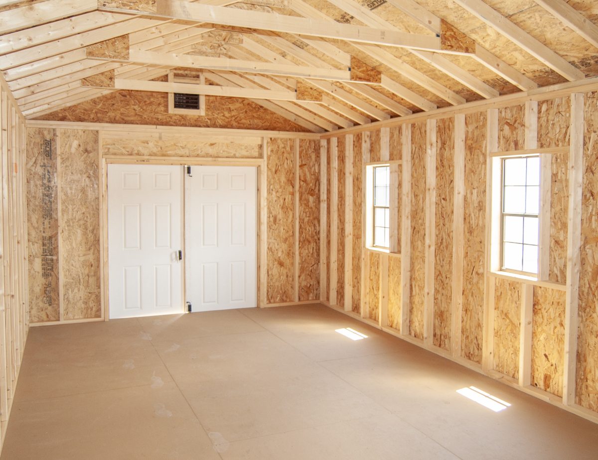 - Quality Built with 4x4 pressure treated runners, double top wall plates (with interlocking corners), 5/8'' engineered floor sheathing, and 2x4 wall and rafter studding on 16" centers