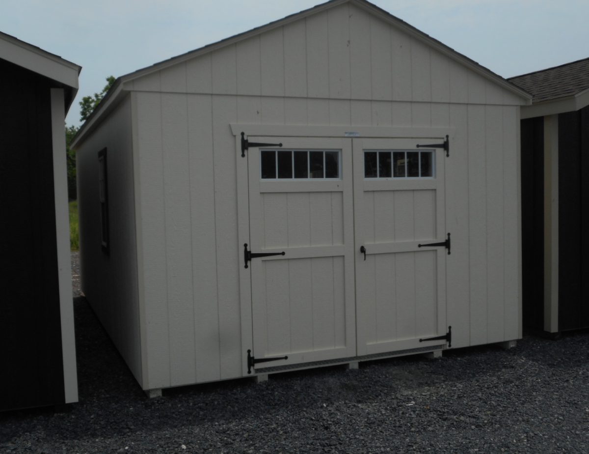This 12×20 shed is located at our Limerick location. Boasting 240 square feet of storage, and another 72′ of storage with the 3 24″ shelves inside, this building is ready to declutter your garage! This building has 50 year LP Smart Siding that is infused with a zinc borate. The result of this process is a termite proof siding that is not prone to absorb waters or oils and resists fungal decay. This shed is available for delivery or being the manufacturer you can order one and choose any style, size, color scheme, and layout!