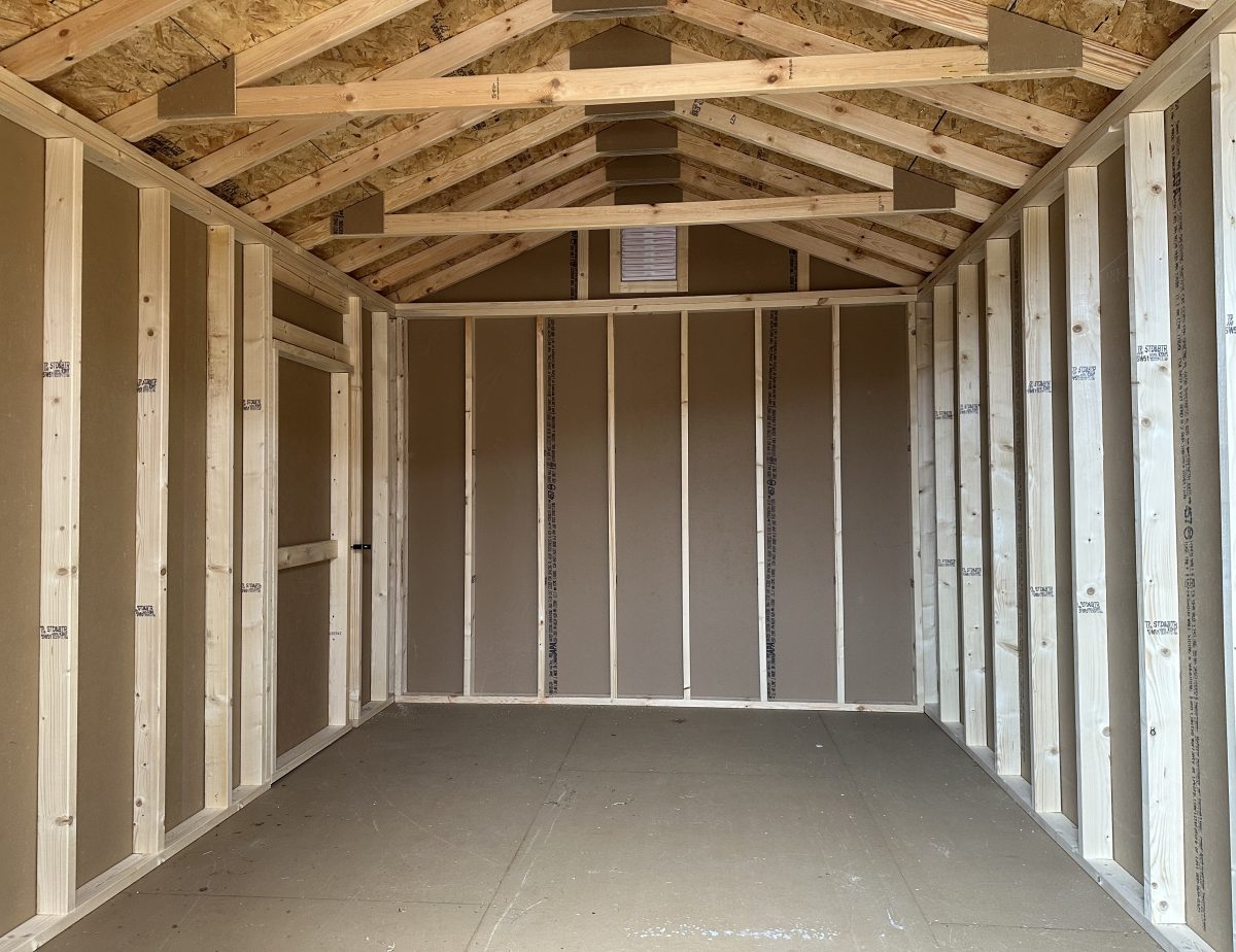 - 8″ On-Center Floor Joists: Double the support of standard sheds to prevent floor bowing under tractor tires.